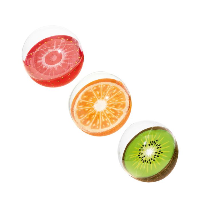 Nafukovací míč patří k hračkám, které v létě nesmí chybět u žádné vody ani na zahradě! S originálním plážovým míčem se jistě nebudeš nikdy nudit! Kterého ovoce si vybereš? Velikost: 46 cm Doporučený věk: od 2 let