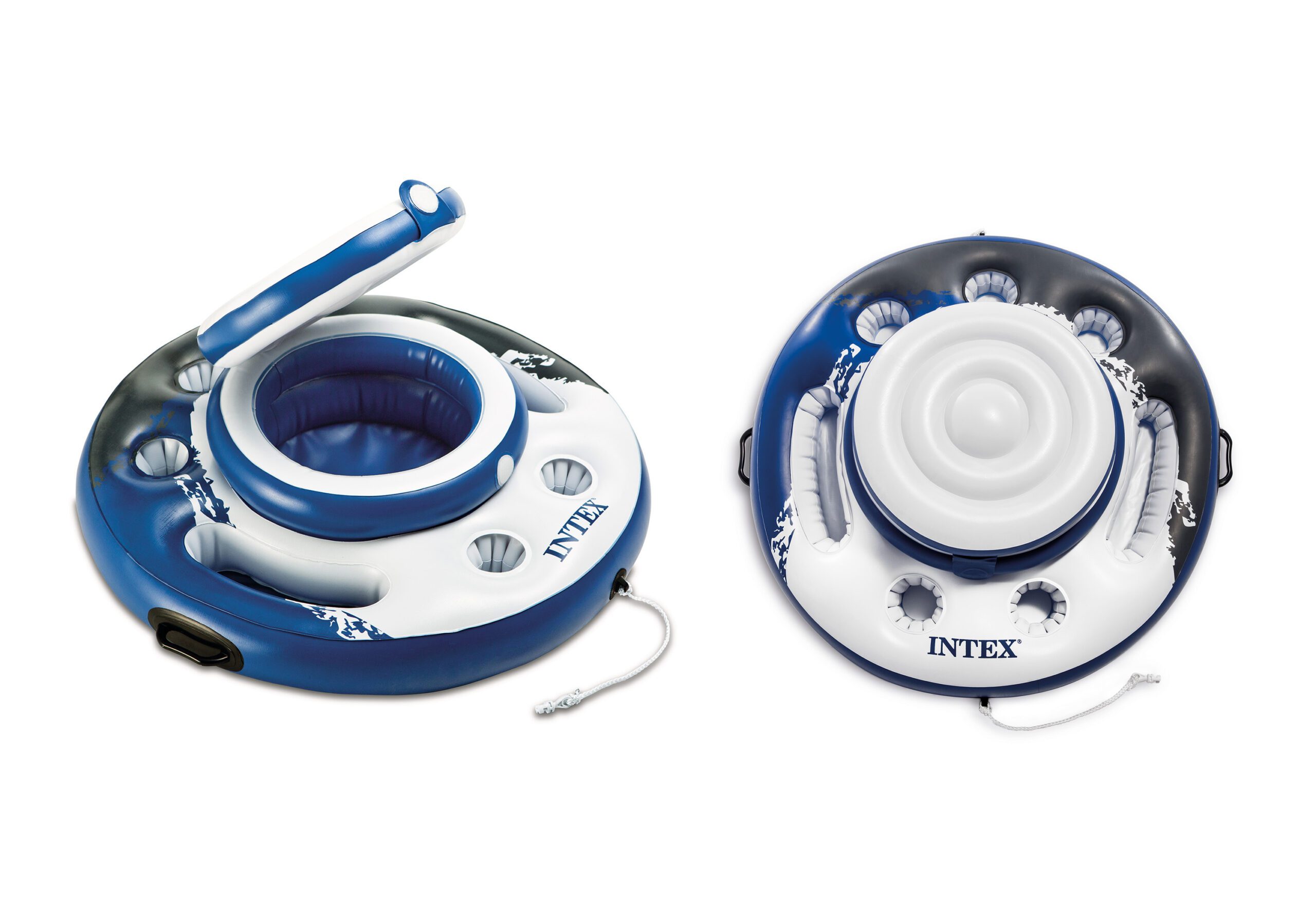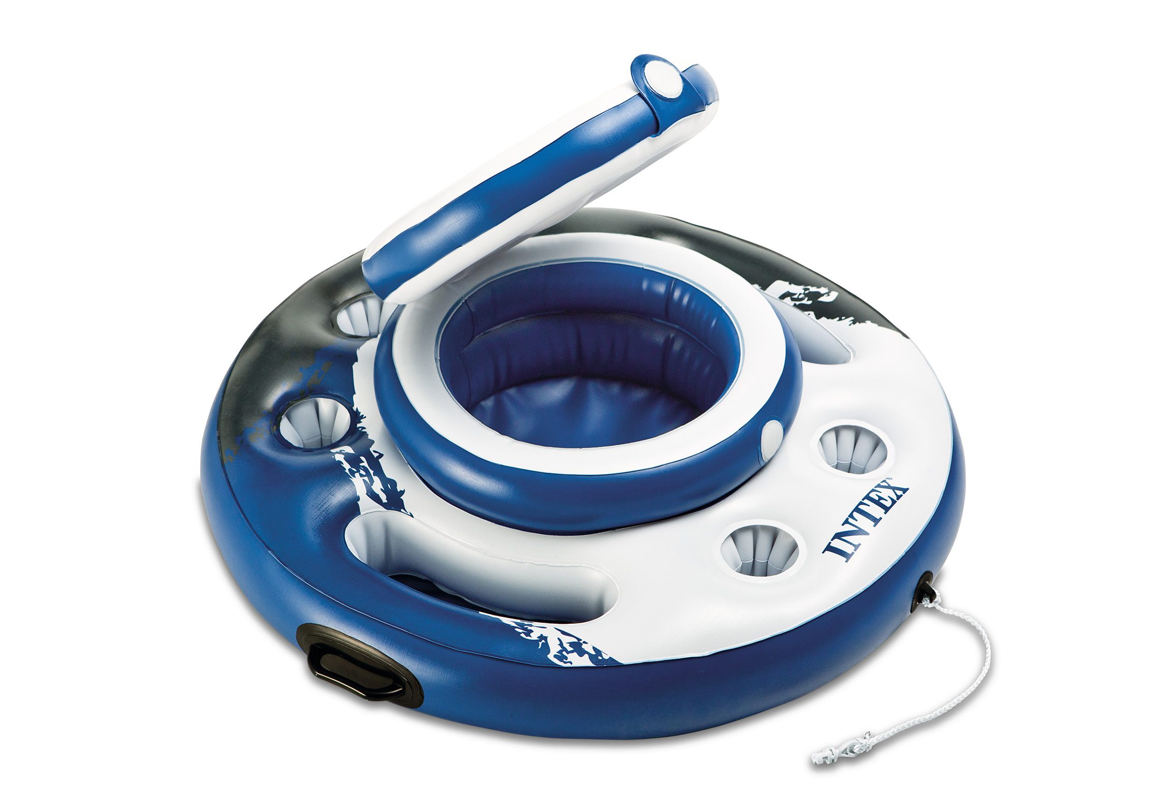 Nafukovací plovoucí bar je ideální pro chlazení nápojů při relaxaci v bazénu. Vychutnejte si osvěžující nápoj i ve vodě! průměr 89 cm 5 držáků na nápoje, 2 přihrádky, 2 postranní madla kapacita až na 24 plechovek nápojů 3 nafukovací komory materiál vinyl 0,4 mm součástí sada na opravy