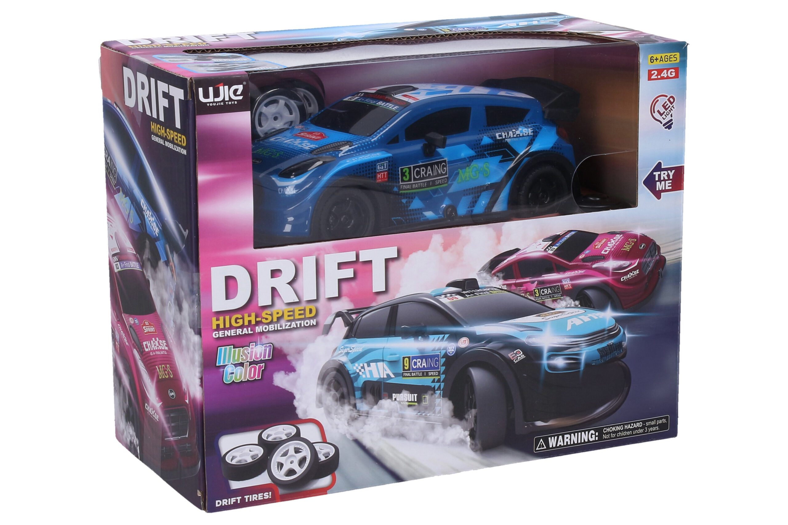 Auto 23 Sprint driftující svítící RC na dálkové ovládání. Rozměry 18,5x8x7 cm. Frekvence 2.4GHz. Pistolový ovladač. Součástí 4 standardní a 4 driftující kola. Světelné efekty povrchu auta tlačítkem na ovladači. Bateriový pack 3.7V 500mAh lithium do auta součástí, 2xAA do ovladače nejsou součástí. Try Me tlačítko pro světelné efekty v obalu – 3xAG13 baterie (neměnitelné) součástí. Při vybalování nutno odpojit Try Me kabel z auta. USB kabel součástí. Rychlost 12 km/h. Provoz až 20 min, nabíjení 2 h, dosah až 40 m. Přepínač ON/OFF na spodní straně auta a na ovladači.