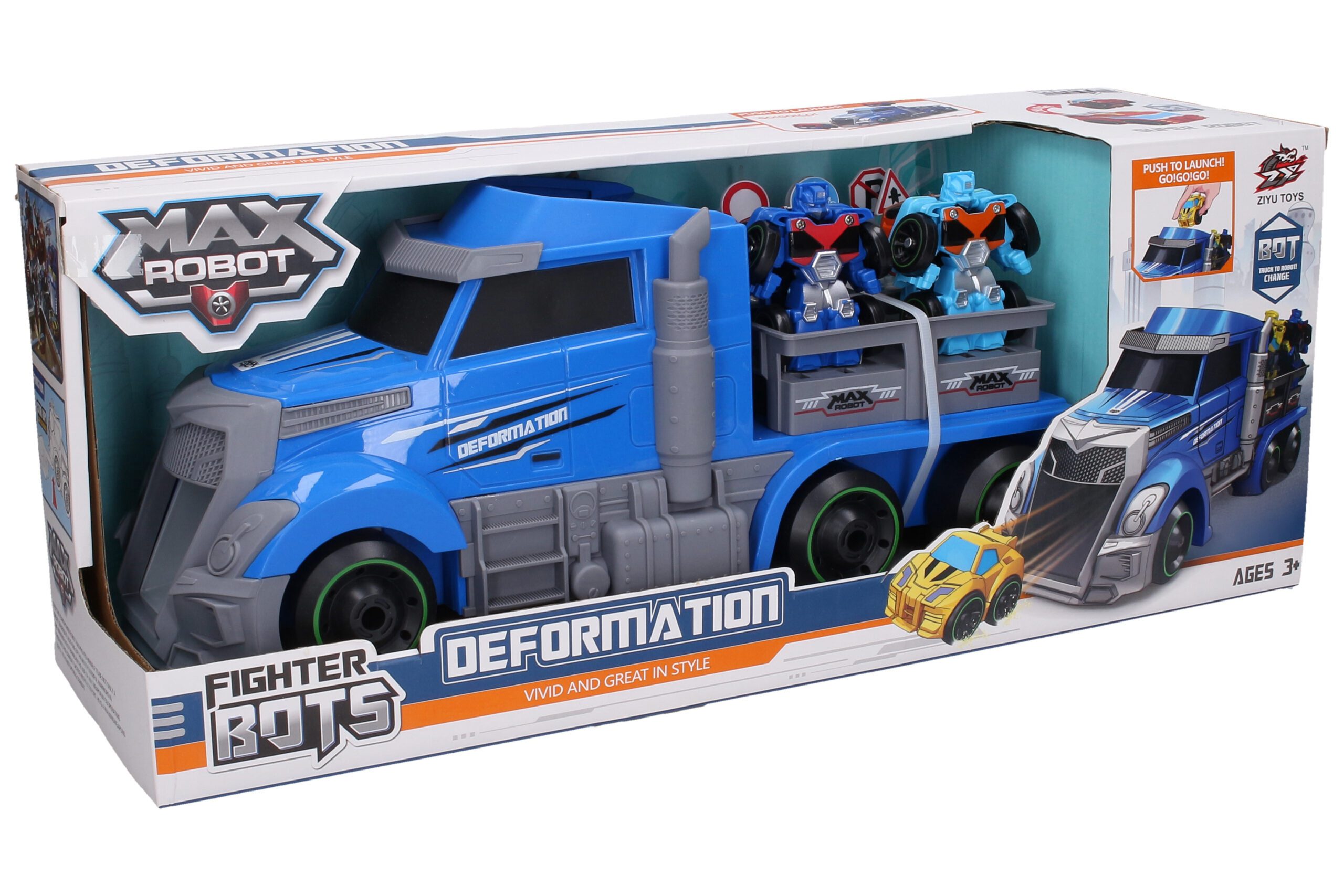 Autorobot Základna s rampou set. Obsah balení – kamion základna autorobotů 38 cm, 2x autorobot 7,5 cm, dopravní značky. Autoroboti se transformují na nákladní auta.