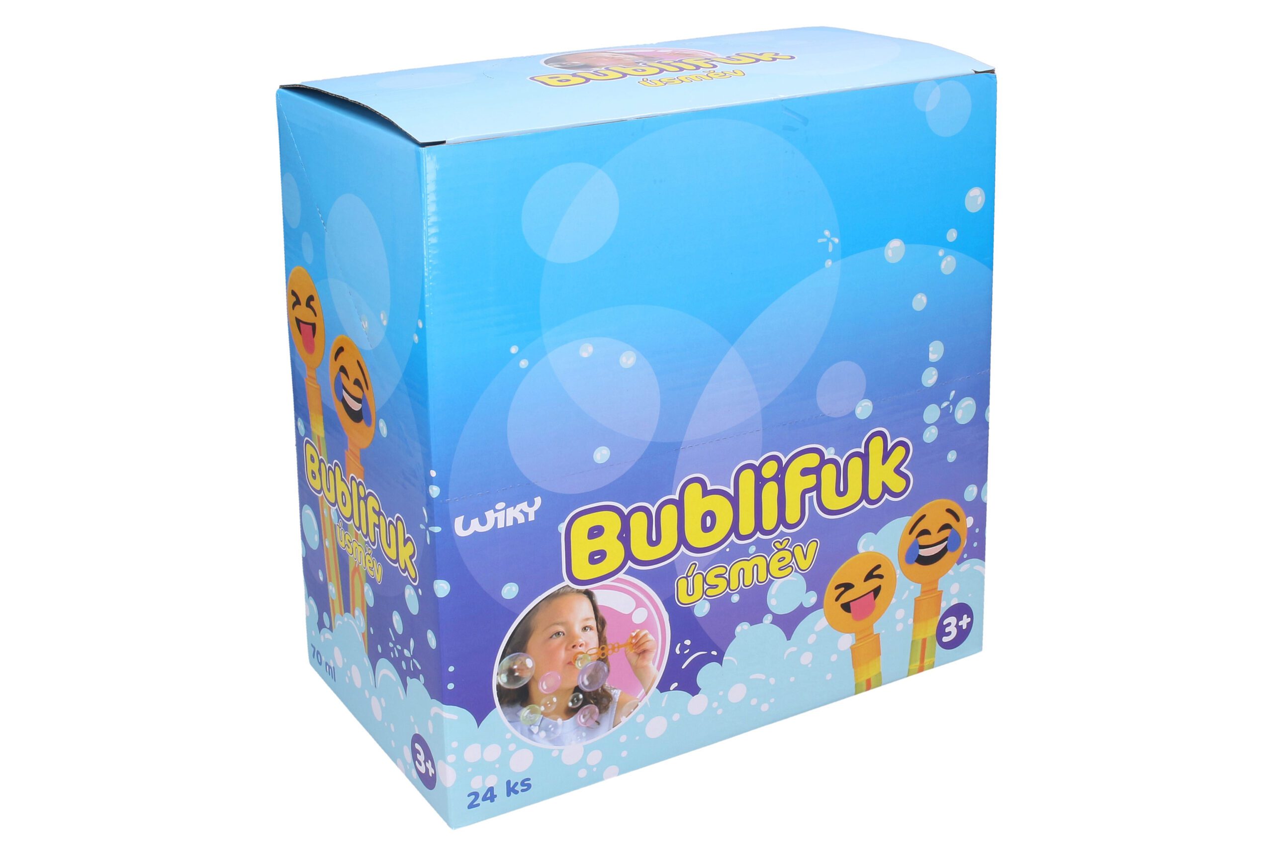Bublinky a bubliny – kdo by je rád netvořil? Dáš si závod s kamarády o největší bublinu? Se stylovým bublifukem s motivem smajlíka to bude zábava! Objem: 70 ml Velikost: 29 cm Doporučený věk: od 3 let Varianty zasíláme dle aktuální skladové dostupnosti. Pokud máte zájem o konkrétní variantu, připište ji do poznámky v objednávce. V případě, že Vámi vybraná varianta nebude skladem, zašleme aktuálně dostupnou.