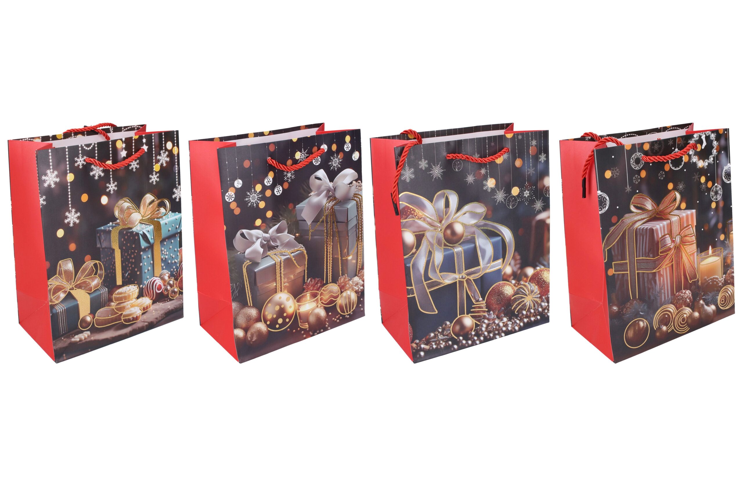 Dárková taška o velikosti M 26x32x10 cm VÁNOCE. 4 varianty.