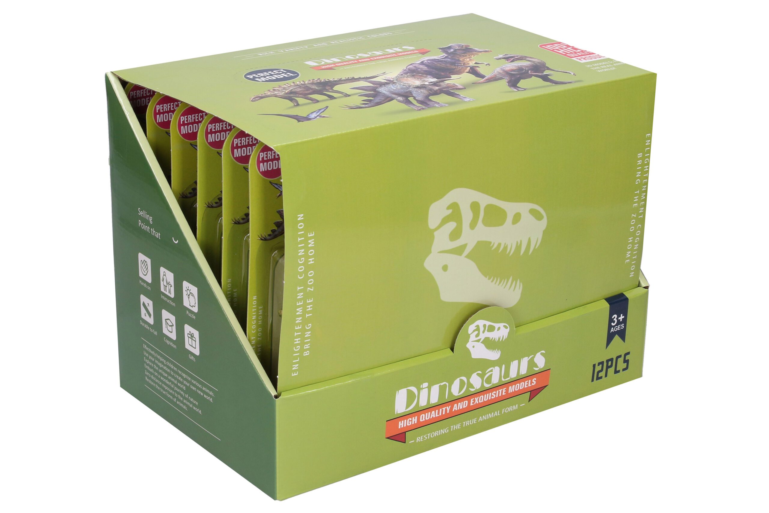 Dinosauři figurky set. Rozměry figurek 9x2x3 cm. Obsah balení – 6 dinosaurů, keř, kámen. Display box 12 ks.