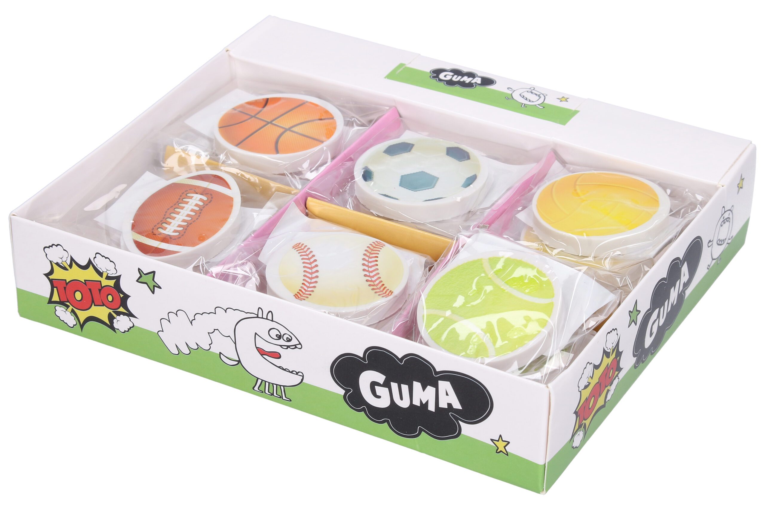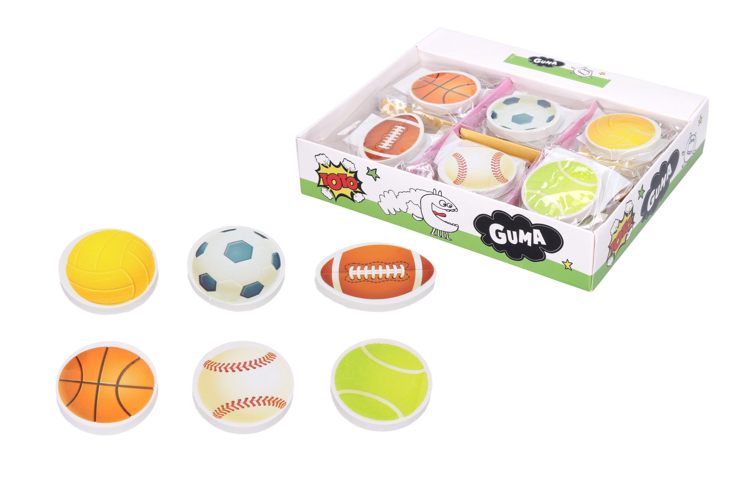 Mazací guma s motivem sportu – nezbytná pomůcka a základ výbavy každého malého školáka. Je vždy po ruce, ať už na stole nebo v penálu. Varianty zasíláme dle aktuální skladové dostupnosti. Pokud máte zájem o konkrétní variantu, připište ji do poznámky v objednávce.