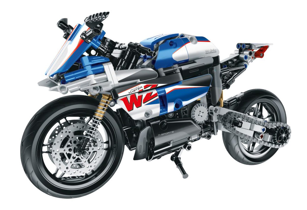iM.Master Stavebnice motorka modrá. Rozměry 32,4x17x11 cm. 542 dílků. Otáčecí zadní kolo s řetězem, fungující zadní tlumič.