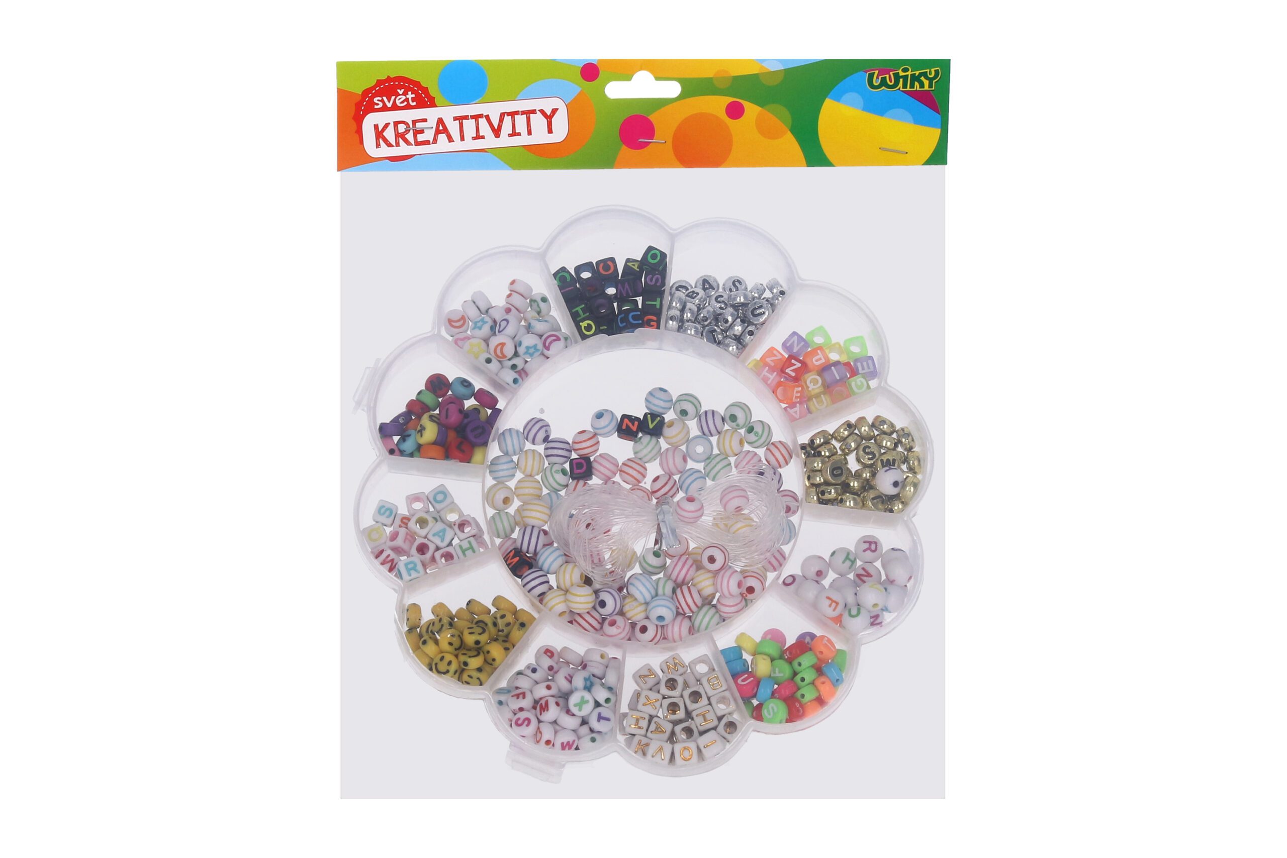 Korálkový set o hmotnosti 90g ve tvaru kopretiny. 13 různých druhů korálků + provázek.