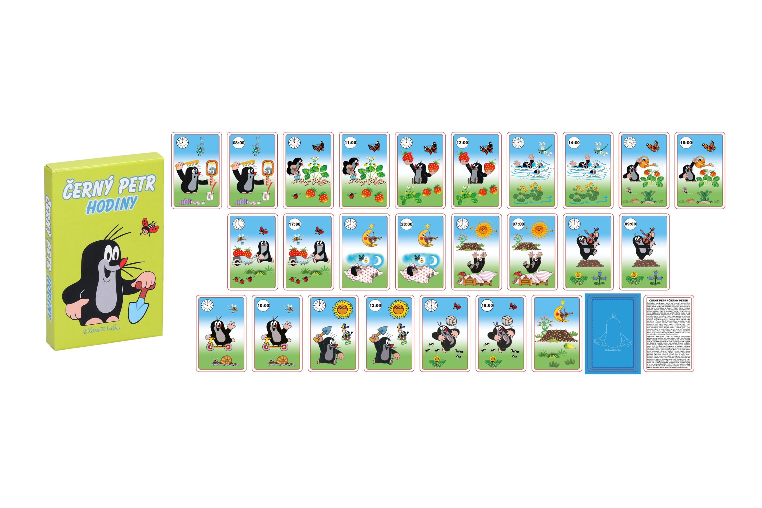 Černý Petr hodiny. Klasická kartová hra. Obsahuje 31 karet a návod. 10,5×6,5×1,5cm