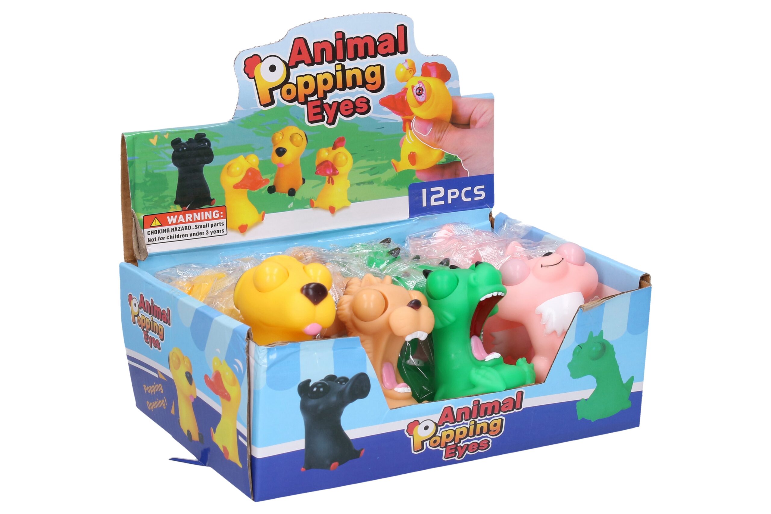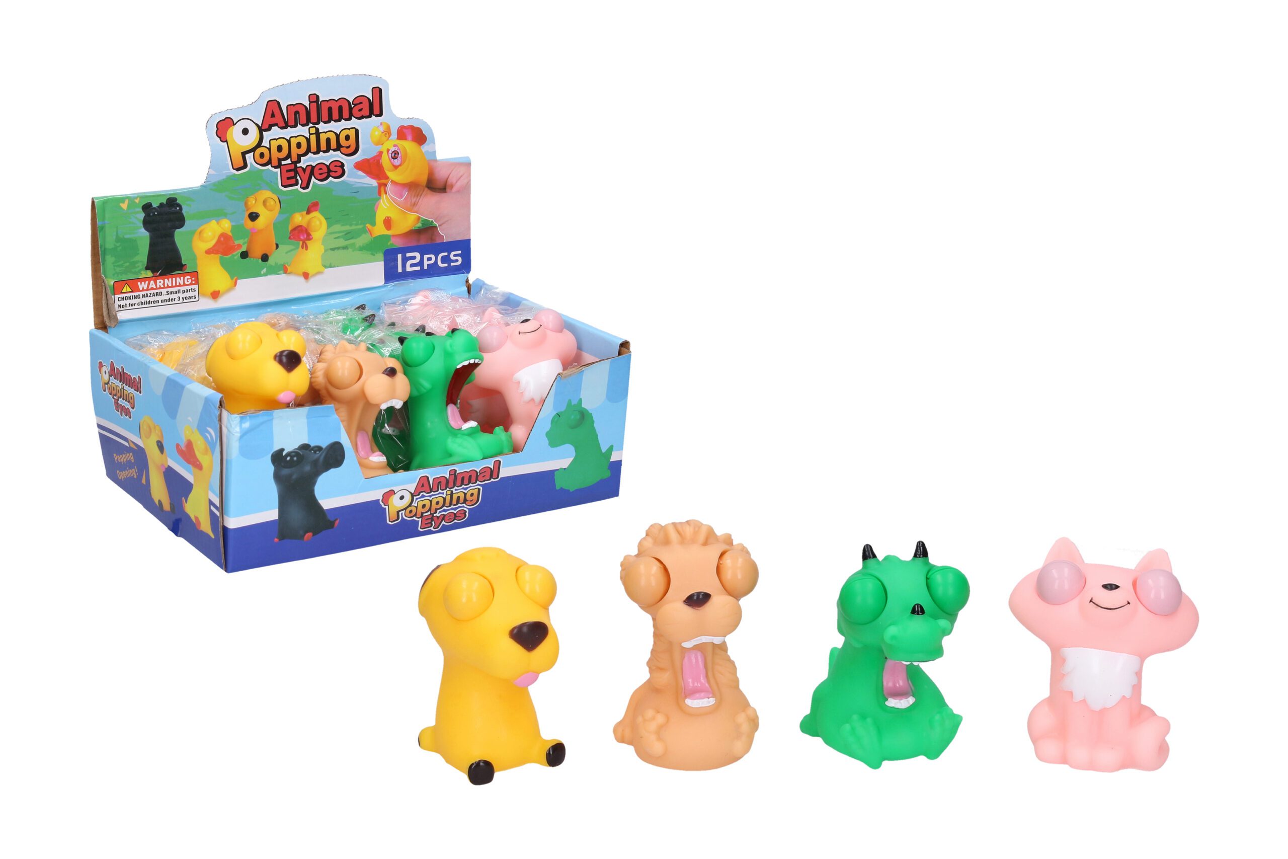Mačkací zvířátko kulící oči. Velikost 8 cm. Display box 12 ks. 4 varianty – pes, drak, kočka, lev.