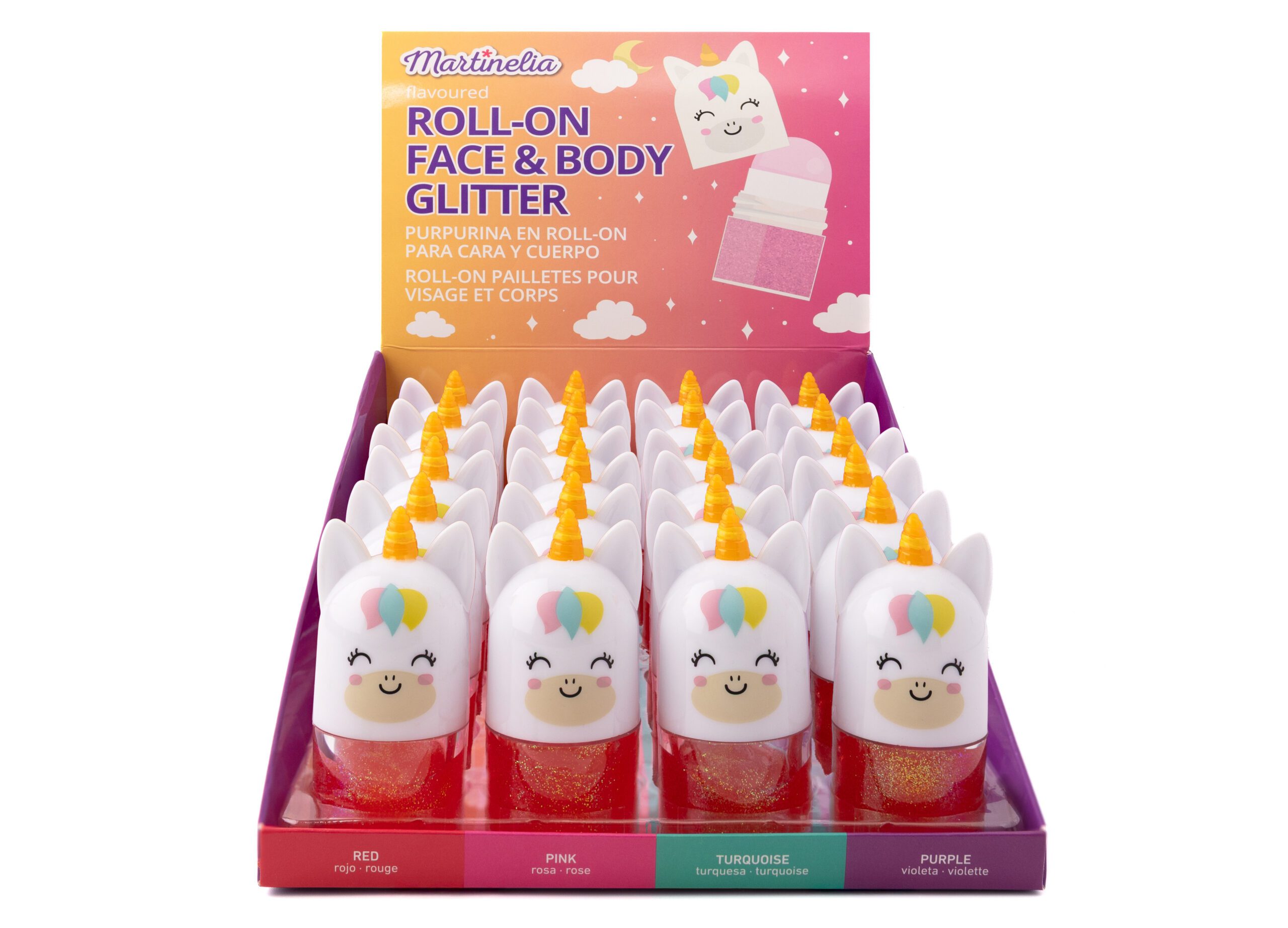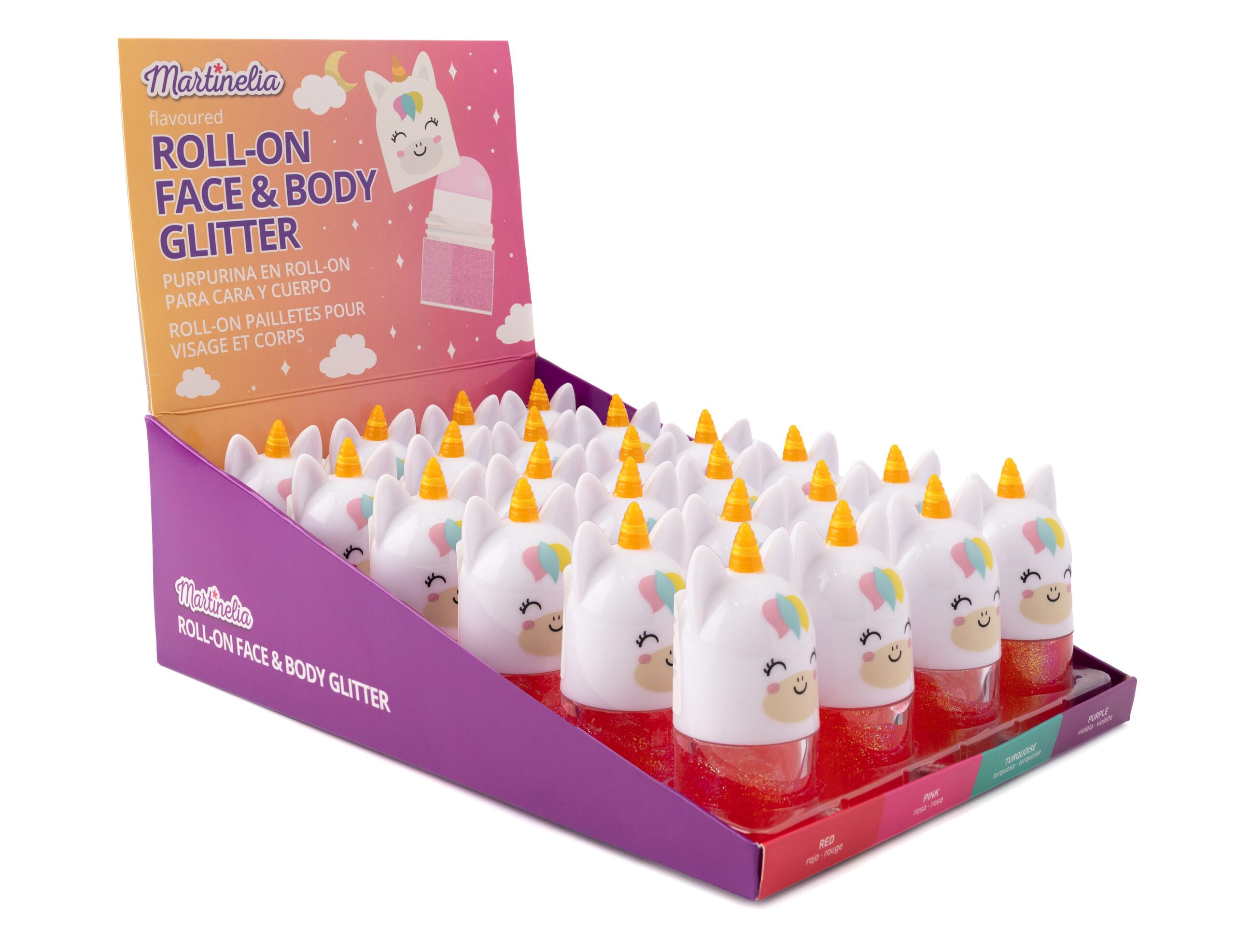 Třpytivý Roll-on na tělo a obličej. 24ks v display boxu