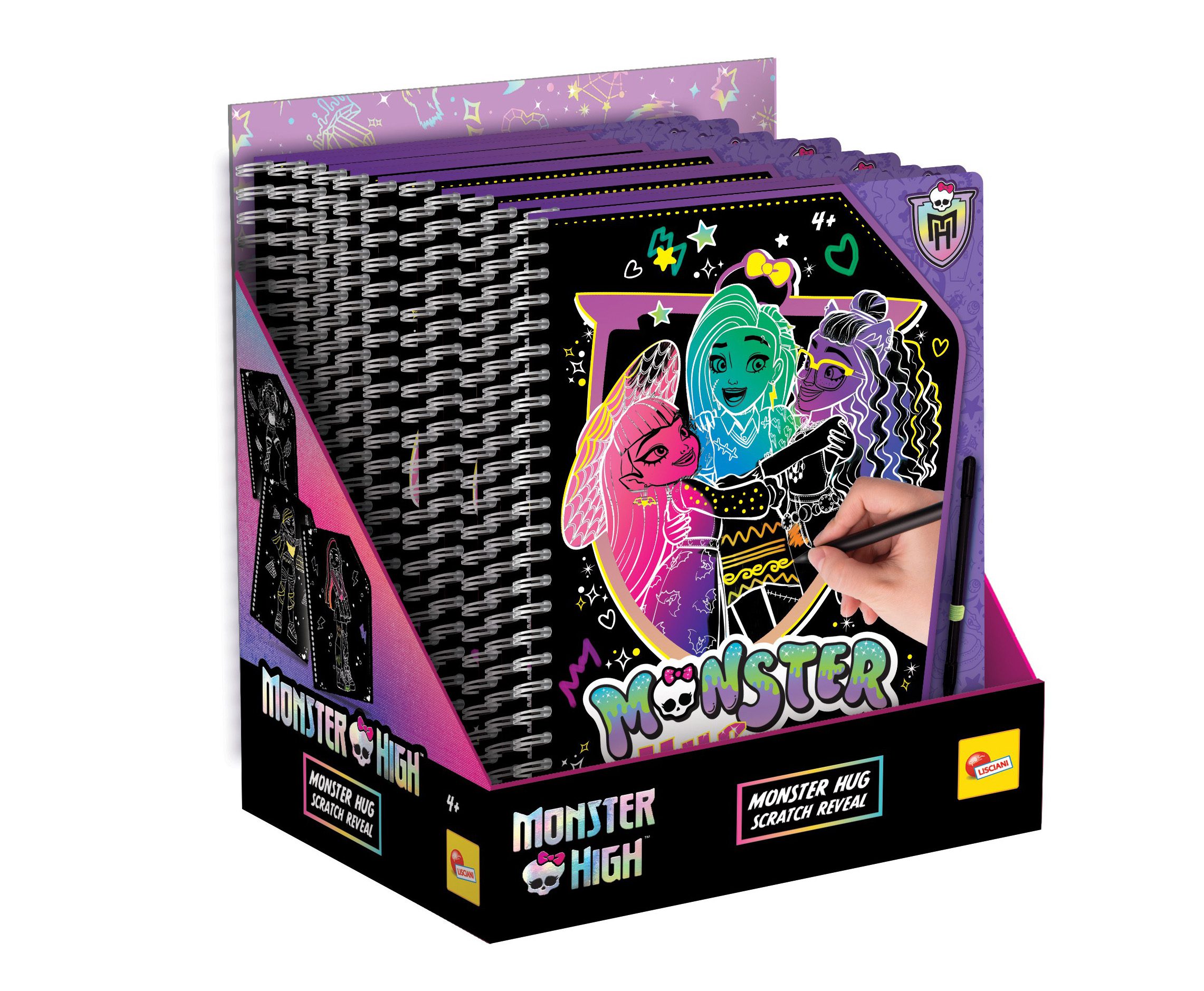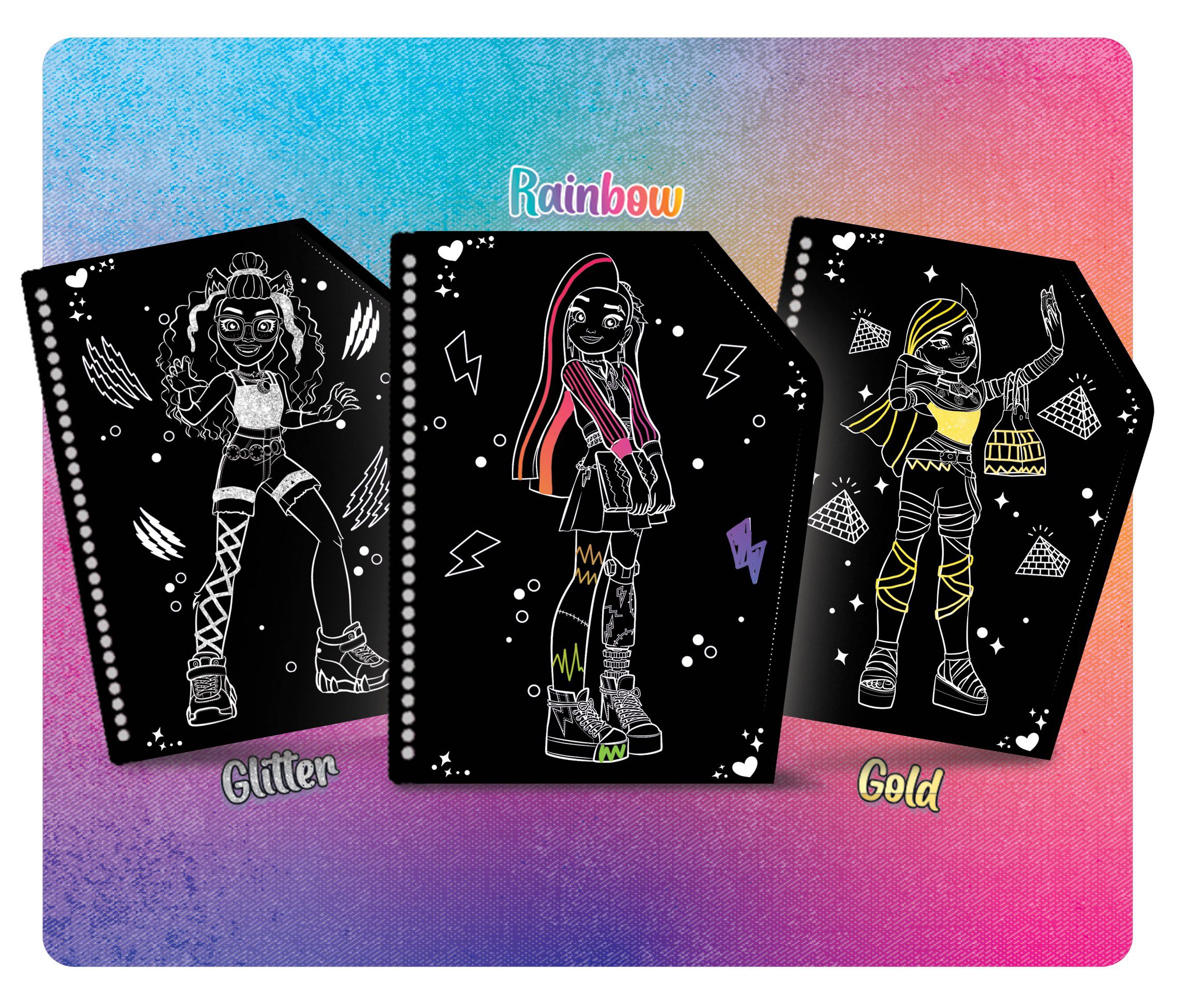 Monster High Vyškrabávací omalovánky objetí. Obsahuje omalovánky a škrabací pero.