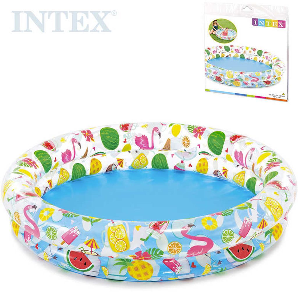 Dvoukruhový bazén Hvězdice od Intexu, báječné letní osvěžení pro děti!Dětský nafukovací bazén ve tvaru kruhu zpříjemní každému dítěti horké letní dny. Bazén je tvořen dvěma nafukovacími komorami s obrázky hvězd.Součástí balení je také sada na lepení.Bazén je vyroben z testovaného masivního vinylu. Nafukovací hračky a potřeby Intex splňují nejpřísnější bezpečnostní normy na zpracování a použité materiály.Rozměry: 125 x 25 cmMax výška vody 14 cm (106 L)Baleno v plastovém obalu.Doporučeno pro děti od 3 let