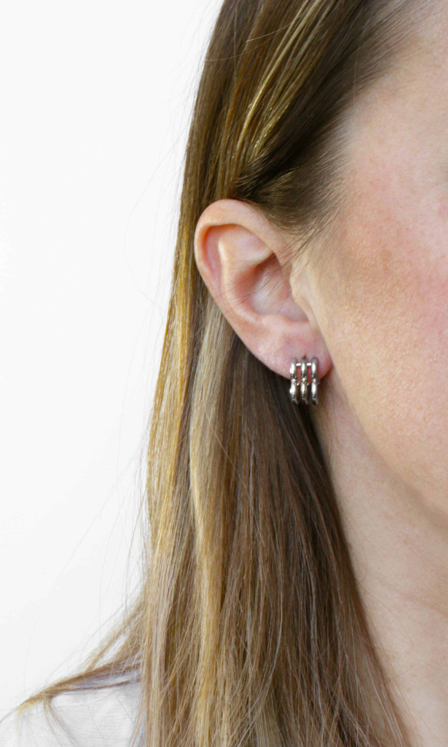 Ocelové náušnice puzety trojité srdce bez krystalů