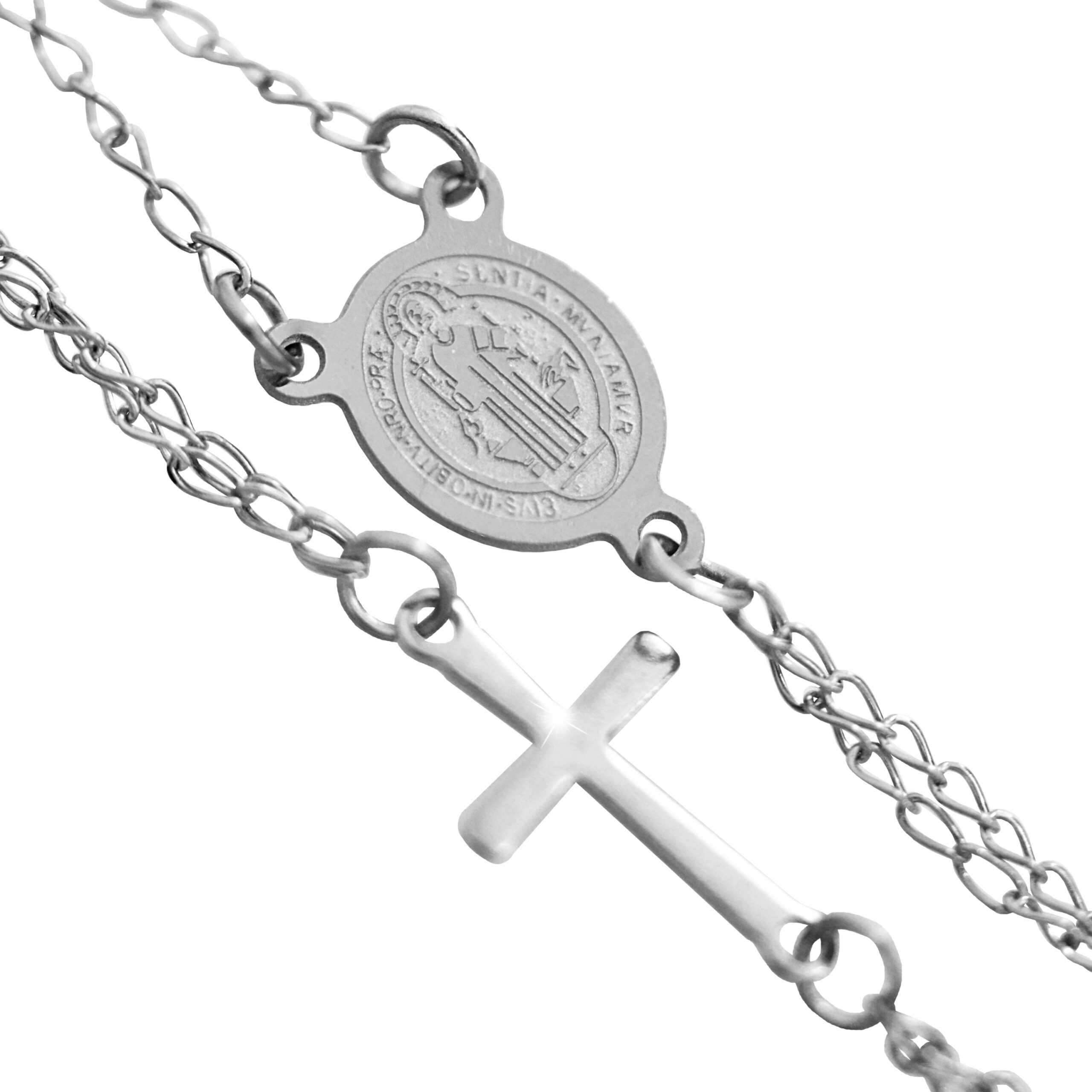 Be the first to review “Ocelový náhrdelník růženec s křížkem a medailonem”