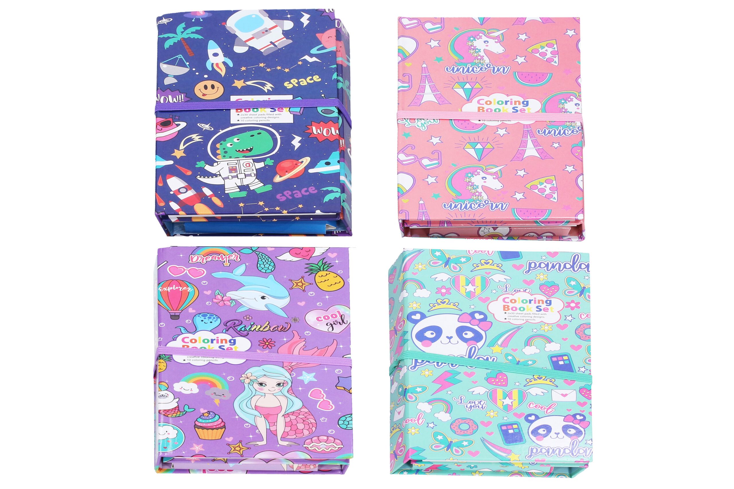 Omalovánky 2×30 listů + 10ks pastelek. 4 různé barevné provedení.