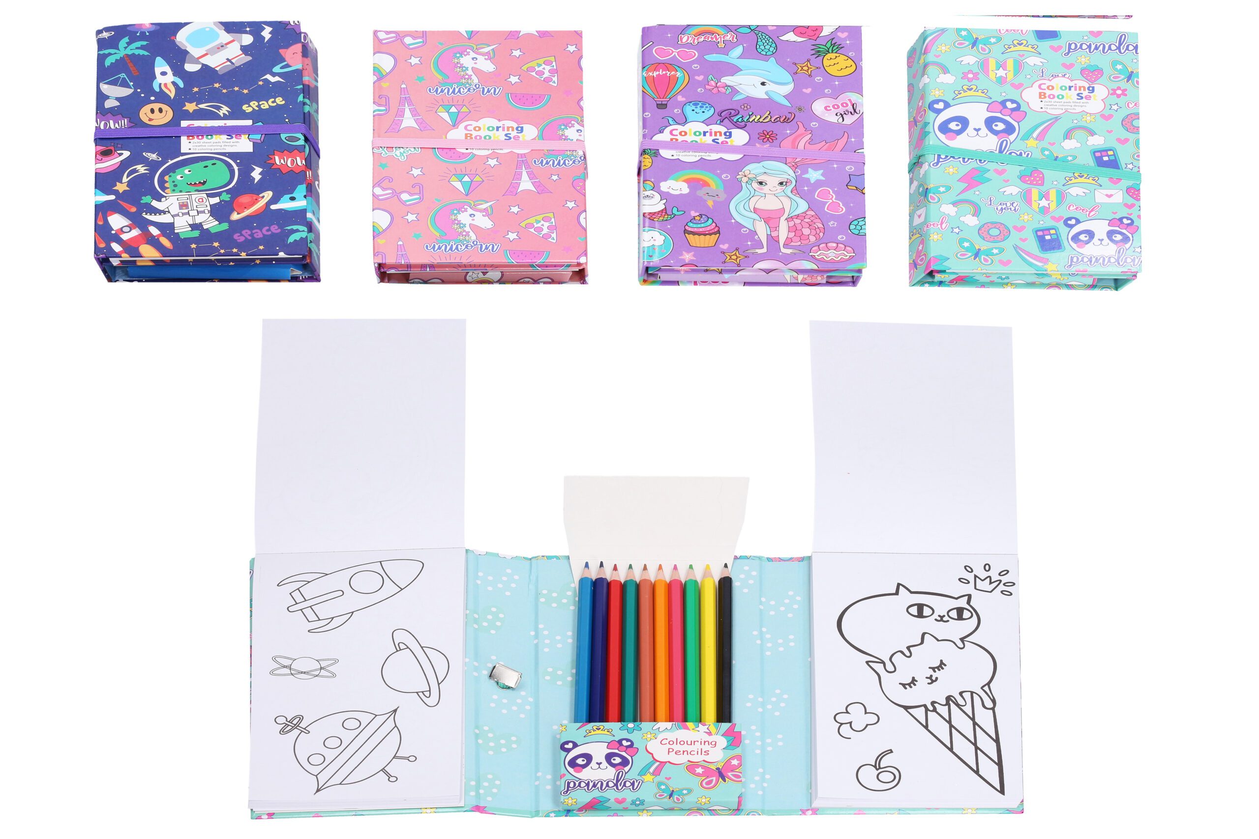 Omalovánky cestovní 2×30 listů + 10 ks pastelky