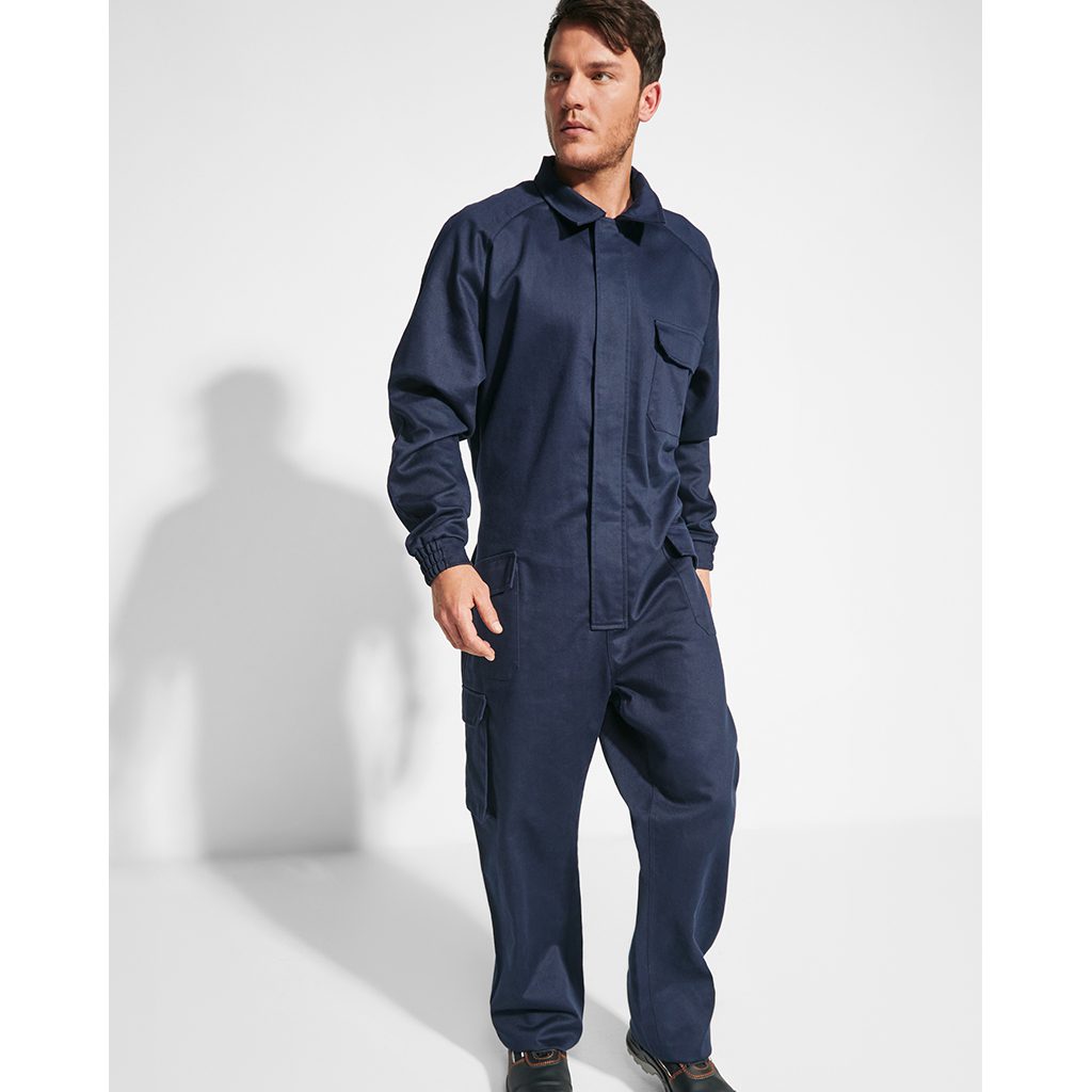 Pracovní kombinéza z nehořlavé látky se zapínáním na zip s klopou se zapínám na suchý zip. Kombinéza má levou náprsní kapsu s klopou a zapínáním na suchý zip, dvě boční kapsy s klopou a zapínáním na suchý zip a jednu skládanou kapsu s klopou a zapínáním na suchý zip. Dále má nastavitelné manžety a zadní kapsu s klopou a suchým zipem. Vyhovuje normě CE dle následujících norem: UNE-EN ISO 13688:2013/A1:2021; UNE-EN ISO 11611:2018: Clase 2; UNE-EN ISO 11612:2018: A1, B1, C1, E3, F1; UNE-EN 1149-5:2008; UNE-EN 61482-1-2:2015: APC = 1