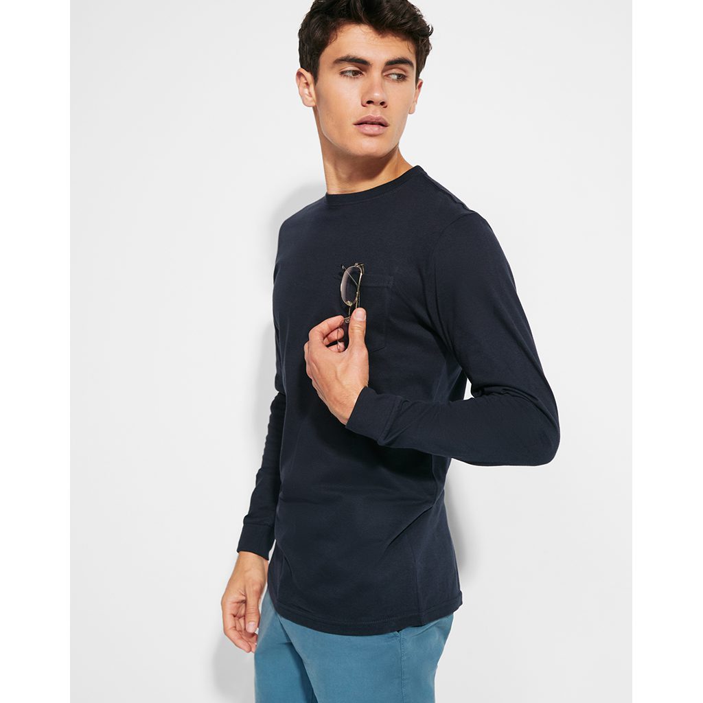 Triko s dlouhými rukávy a kapsičkou na levé straně. Zpevněné skryté švy na průkrčníku a na ramenou. Rukávy jsou zakončeny manžetami, průkrčník je žebrovaný.