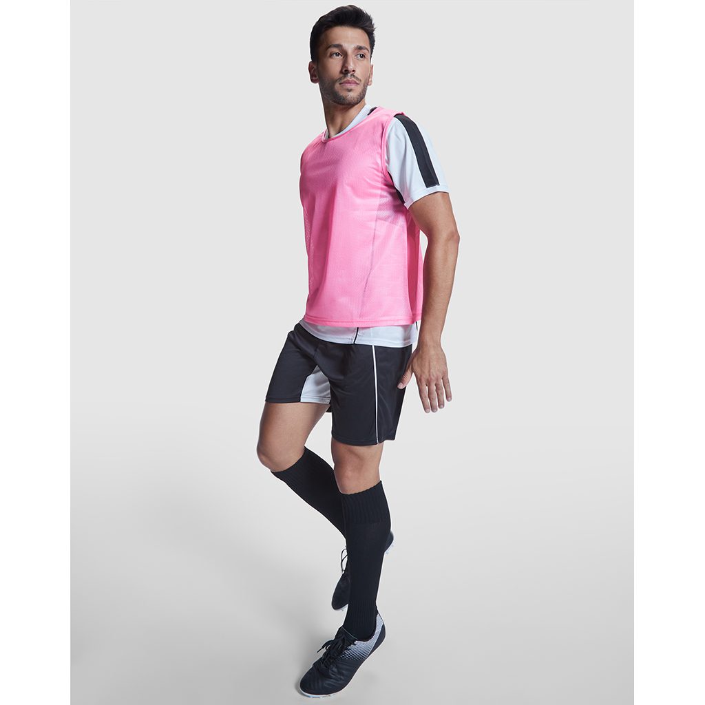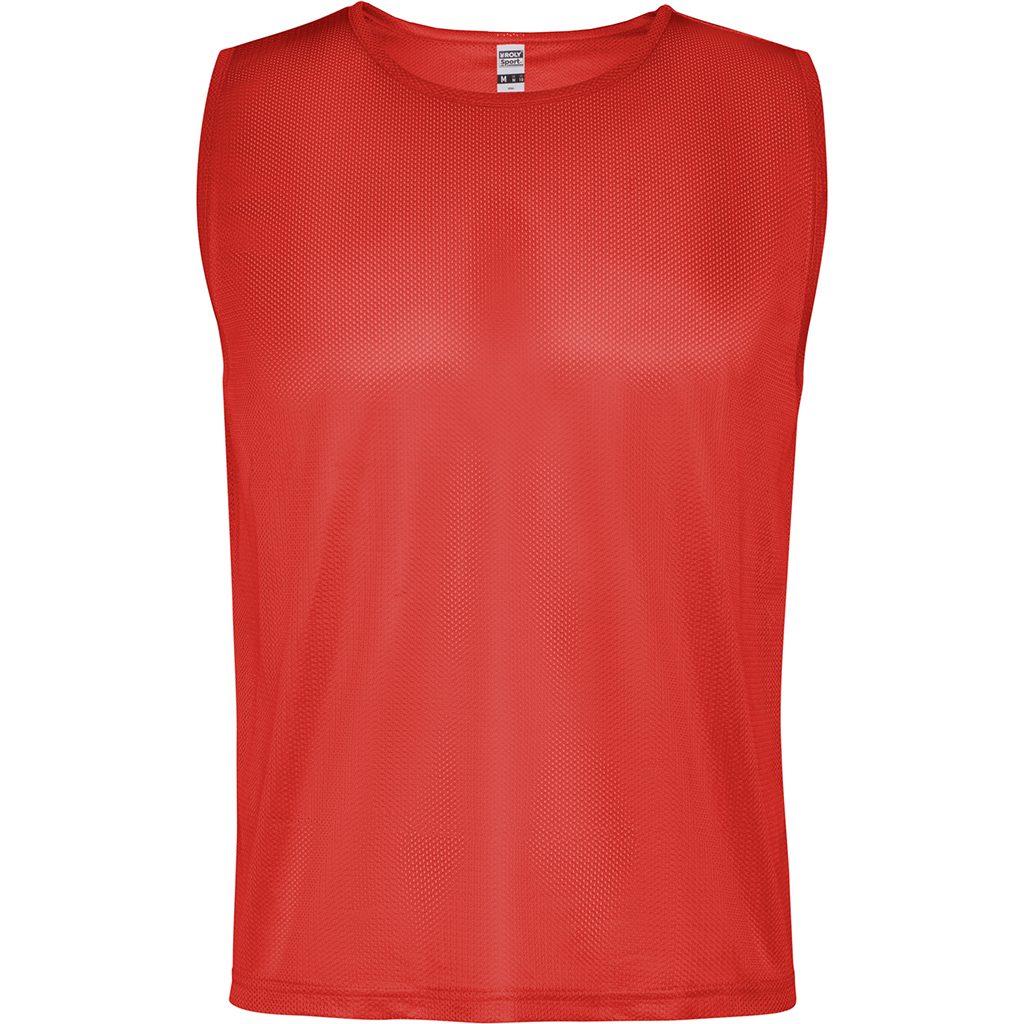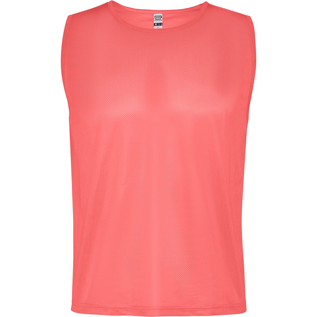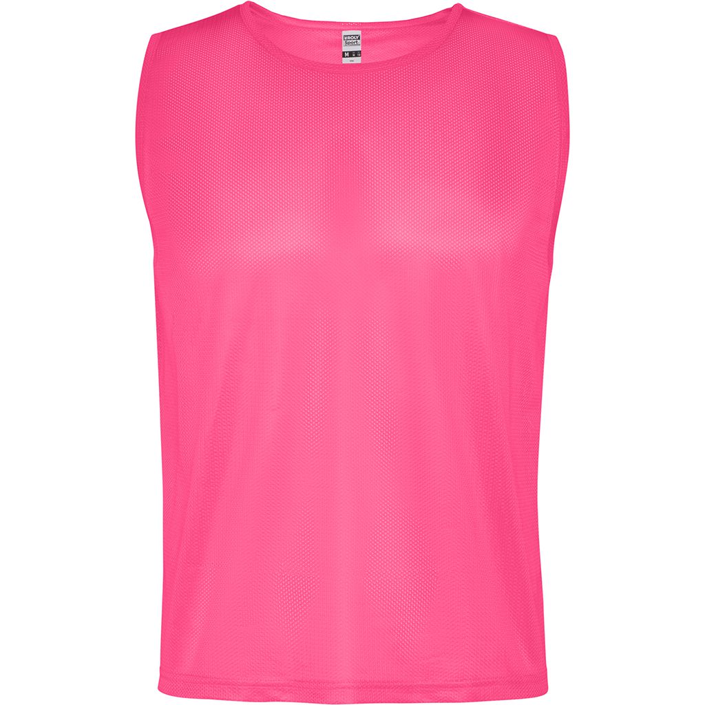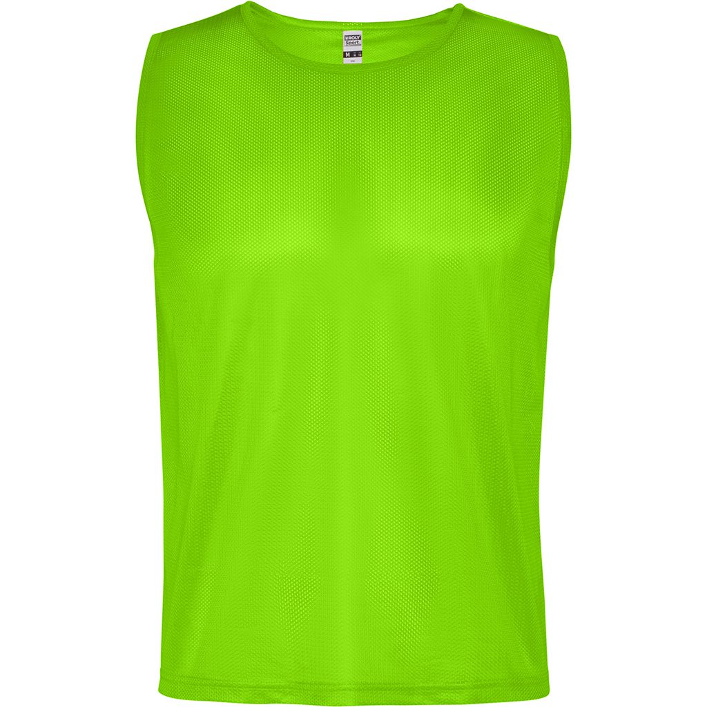 Unisex prodyšná sportovní rozlišovací vesta. Obšití otvorů na rukávech a u krku ze stejné látky. Dvojité prošití lemu.