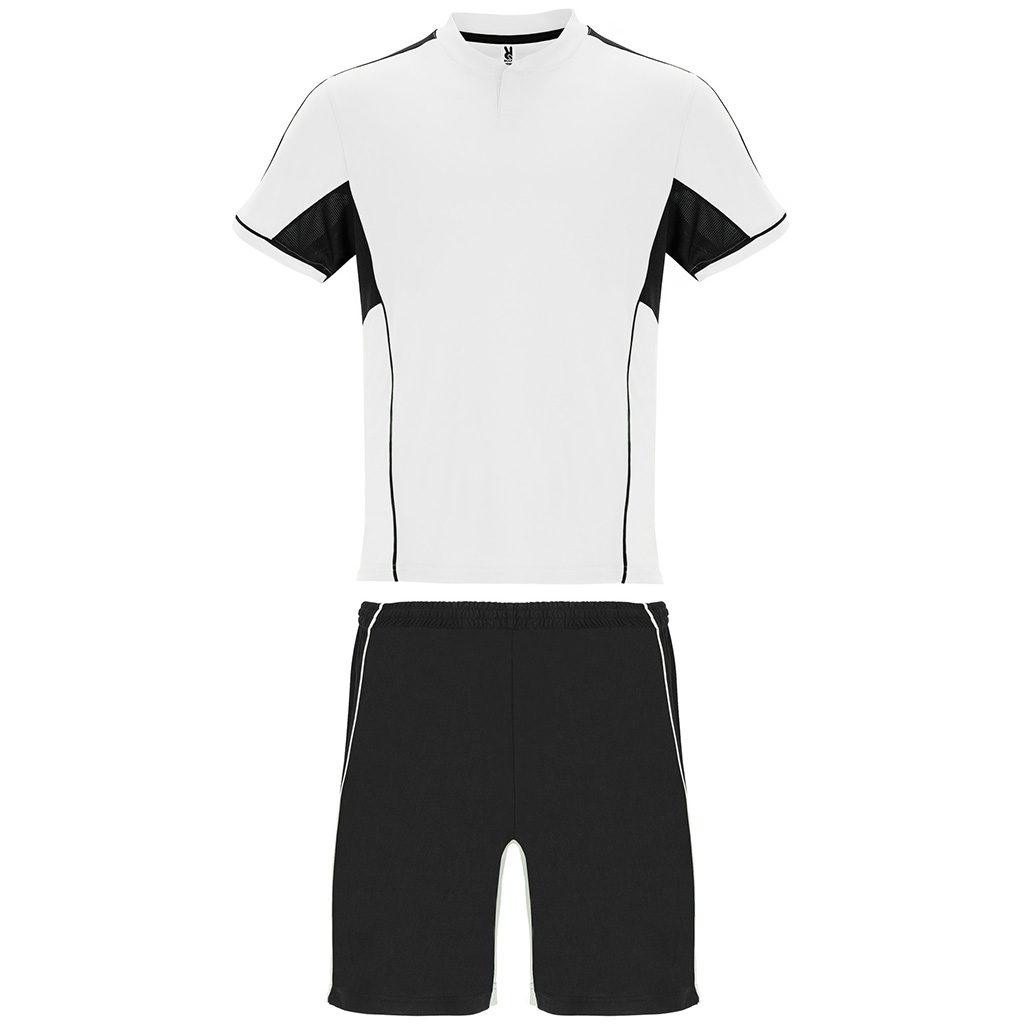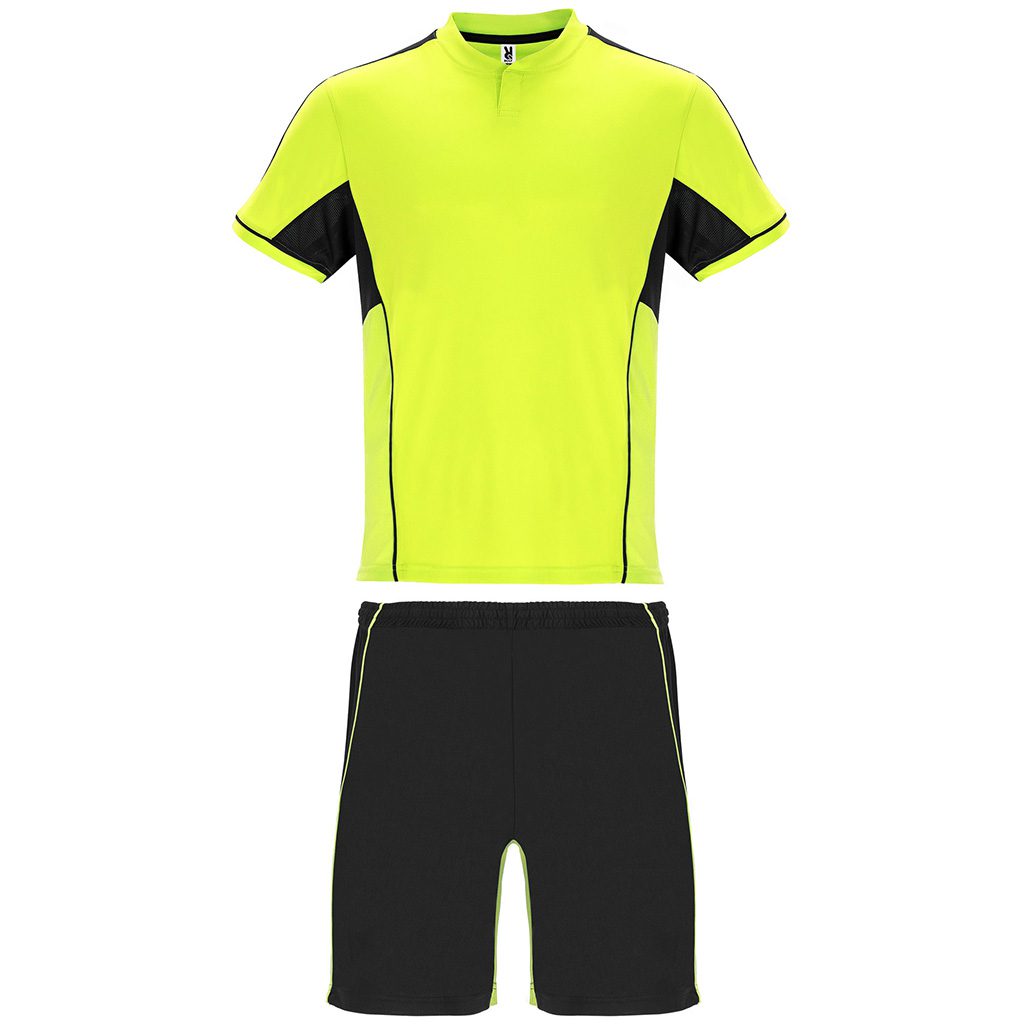 Pánský/dětský sportovní set – tričko + šortky. Tričko s korejským límečkem s otevřením na patent. Vnitřní strana rukávu z prodyšné látky. Postranní panely a horní pruh rukávu z látky typu „control dry“. Krátké kalhoty s nastavitelným pasem se šňůrkou. Spodní část nohavice s kontrastním lemováním látkou typu „control dry“. Odnímatelný štítek. Prodyšný model.