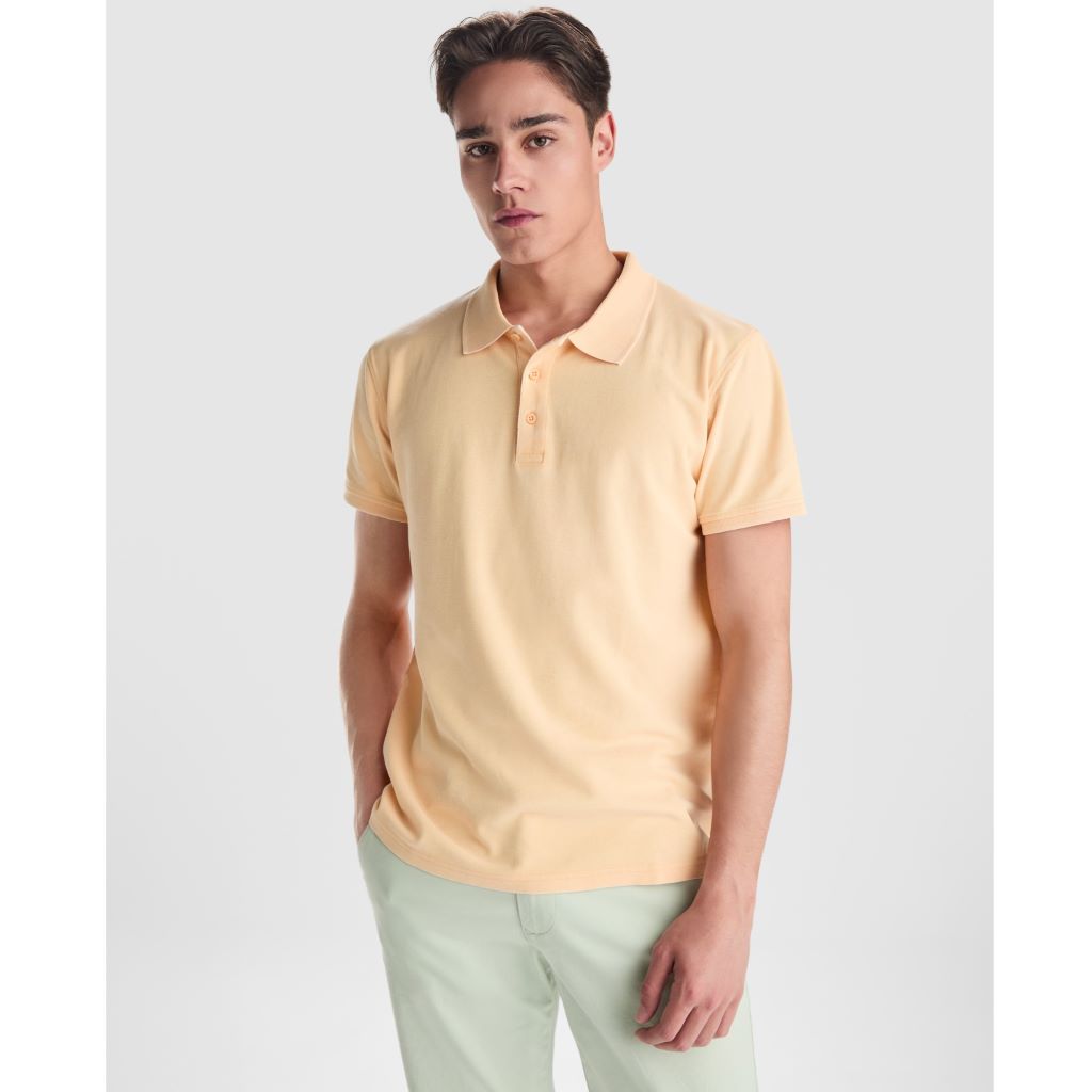 Unisex polokošile s krátkým rukávem. Pique steh. Výstřih a rukávy v úpletu 1×1. Podlepený výstřih ze stejného materiálu. Boční rozparky na spodním lemu.