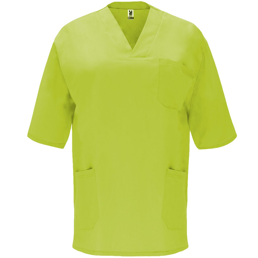 Pracovní blůza unisex s krátkým rukávem a překříženým výstřihem do V.Blůza má jednu náprsní kapsu,dvě postranní kapsy a boční rozparky.