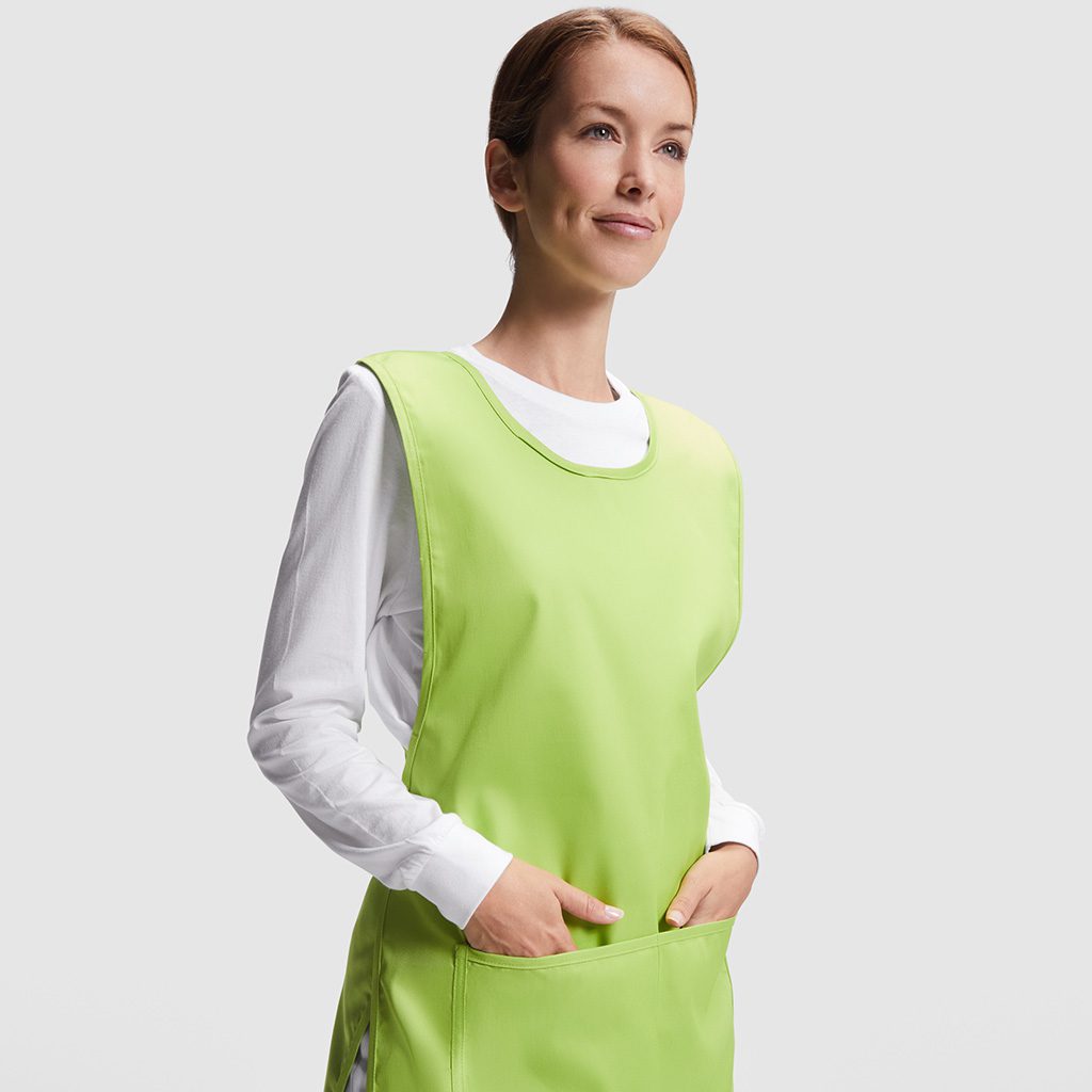 Pracovní halena unisex, která má dvě přední kapsy a postranní šňůrky na uvázání.