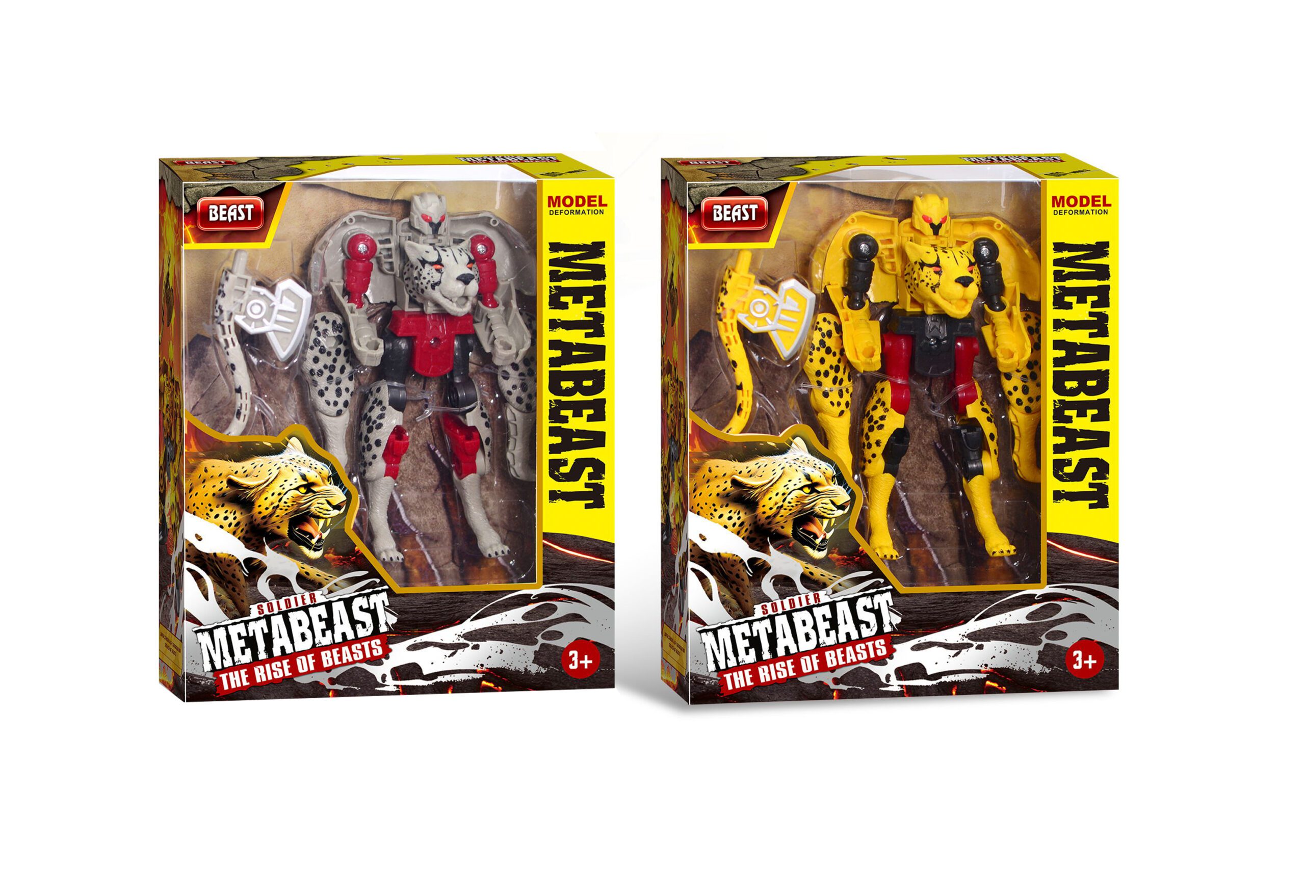 Robot levhart Metabeast. Rozměry 10x4x14 cm. Robot se může složit na levharta. Obsah balení – robot, zbraně. 2 varianty: žlutá, šedá