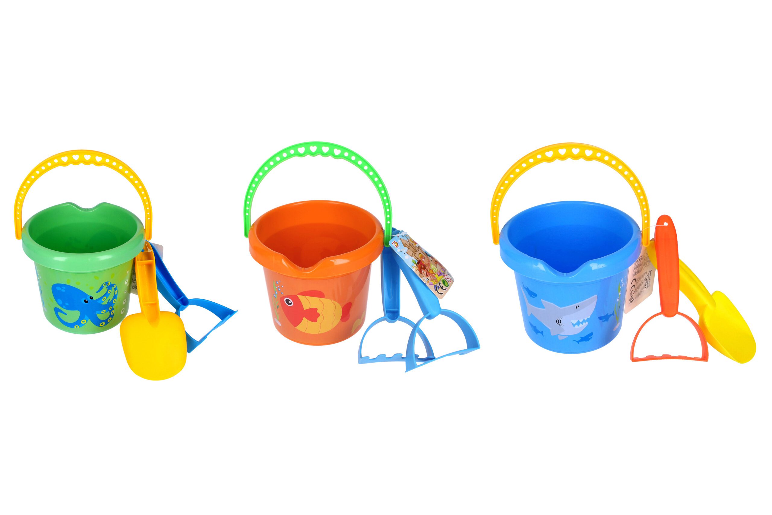 Sada na písek 3 ks (kyblík, lopatka, hrábě). 3 varianty – modrá, zelená, oranžová.