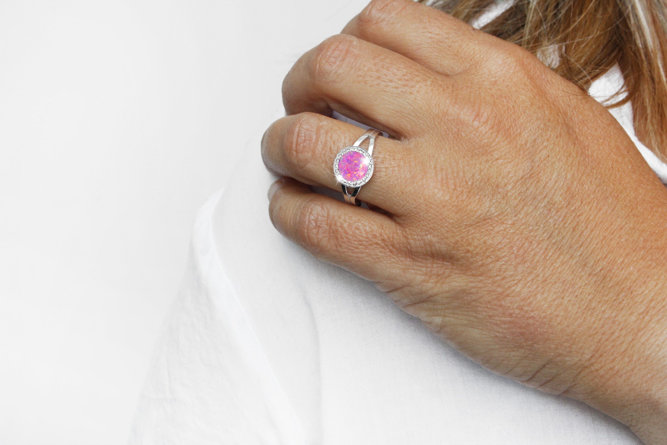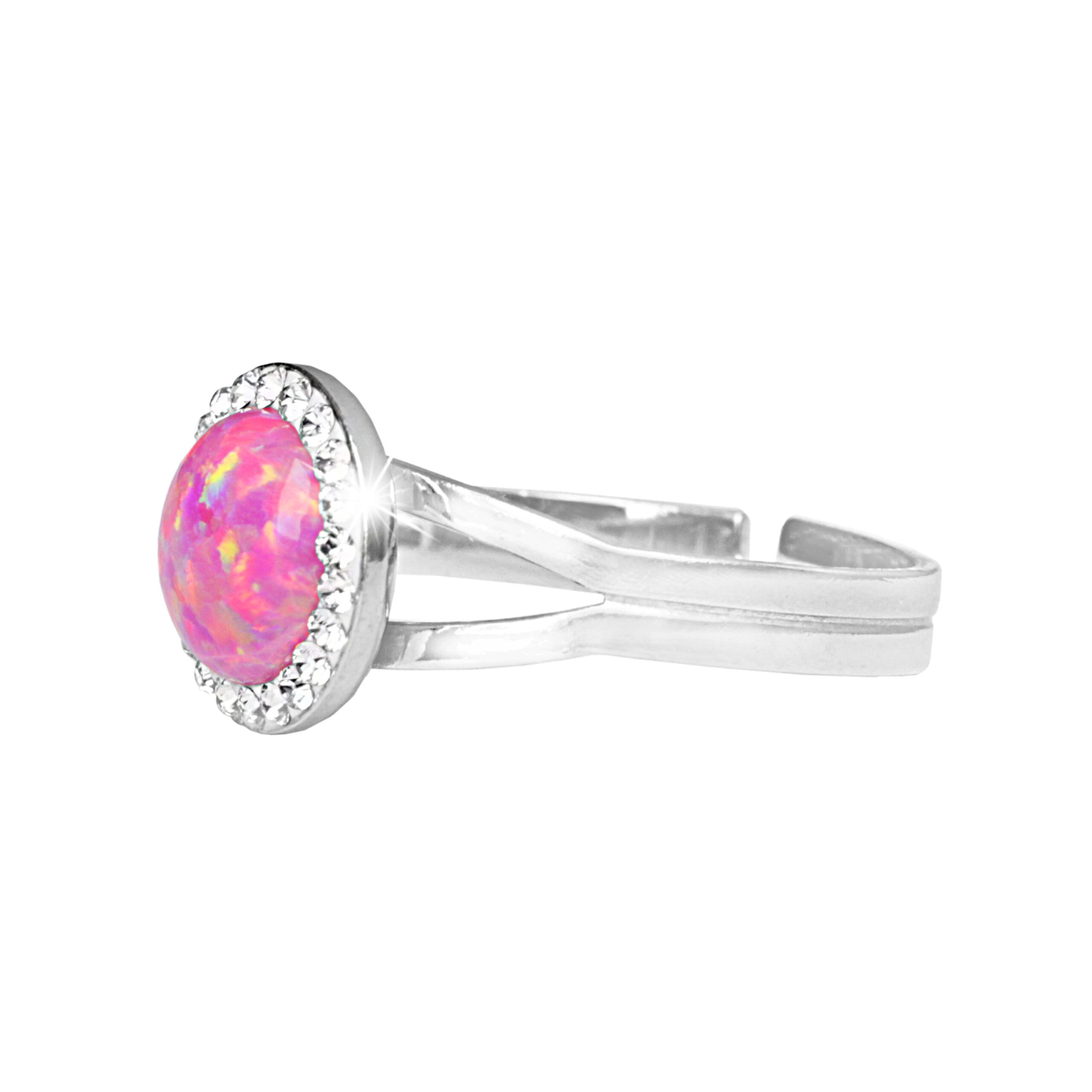 Stříbrný prsten s kulatým opálem a krystaly Swarovski Light Fuchsia velký (Stříbro 925/1000)