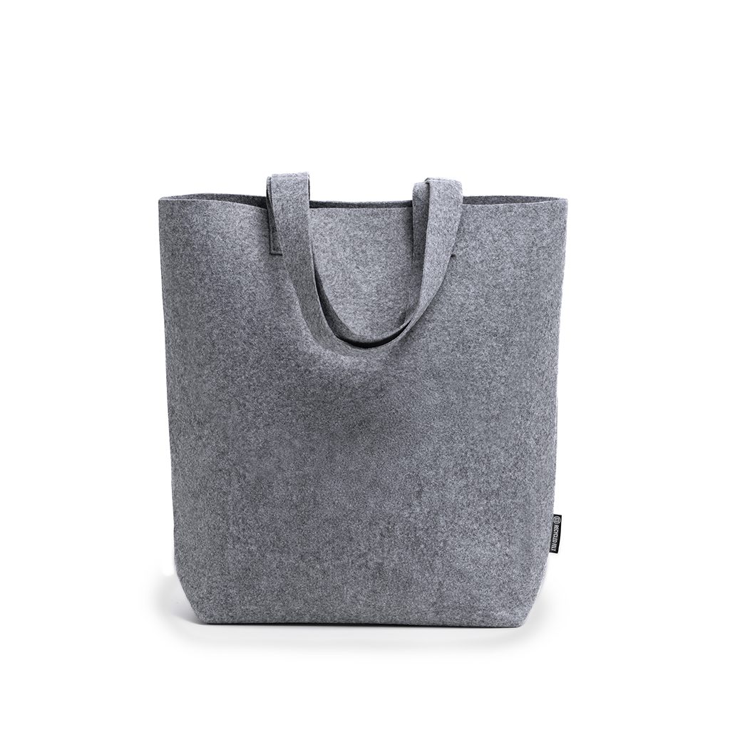 Taška z recyklované plsti ve vřesovém provedení. Zesílená 70 cm dlouhá ucha.