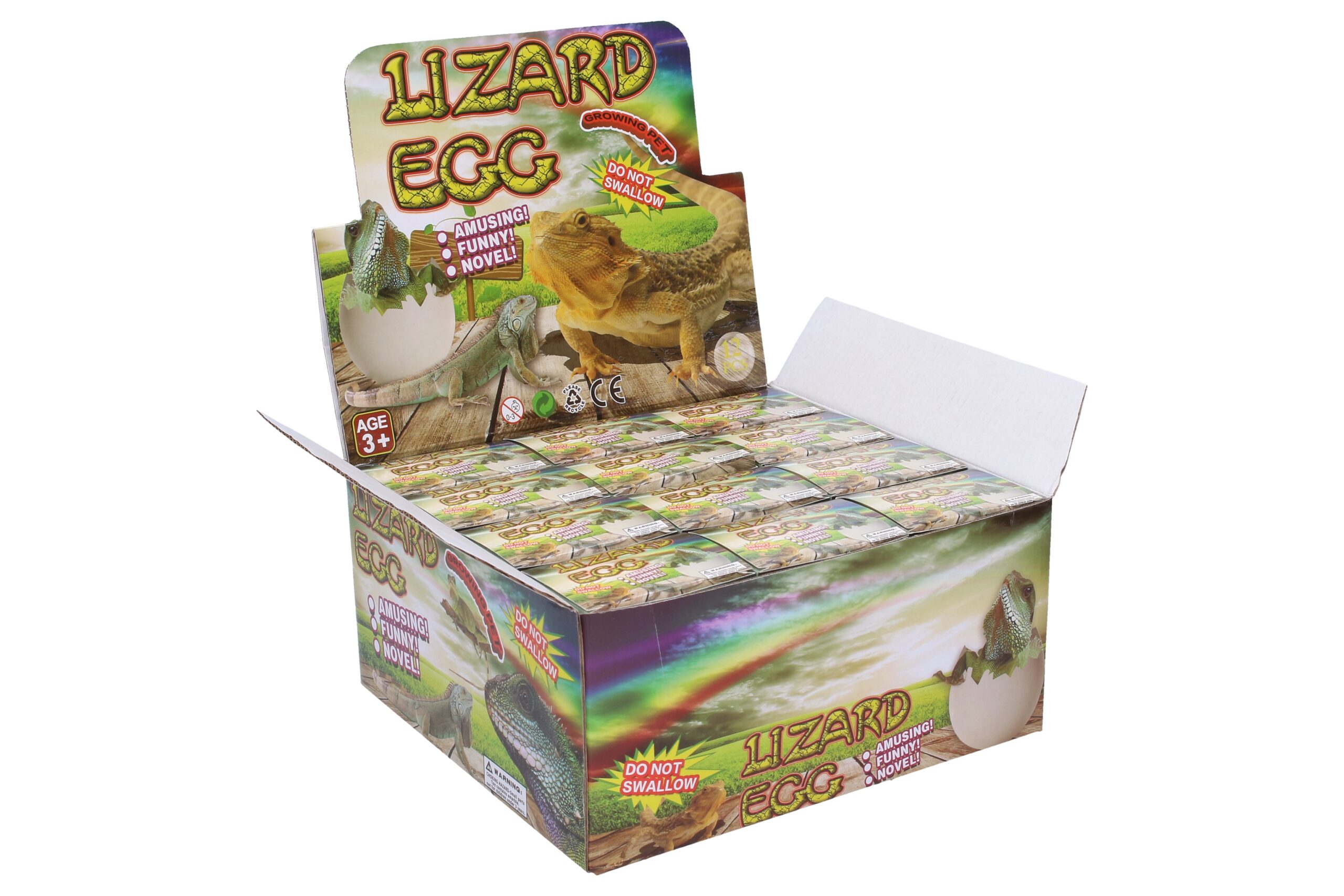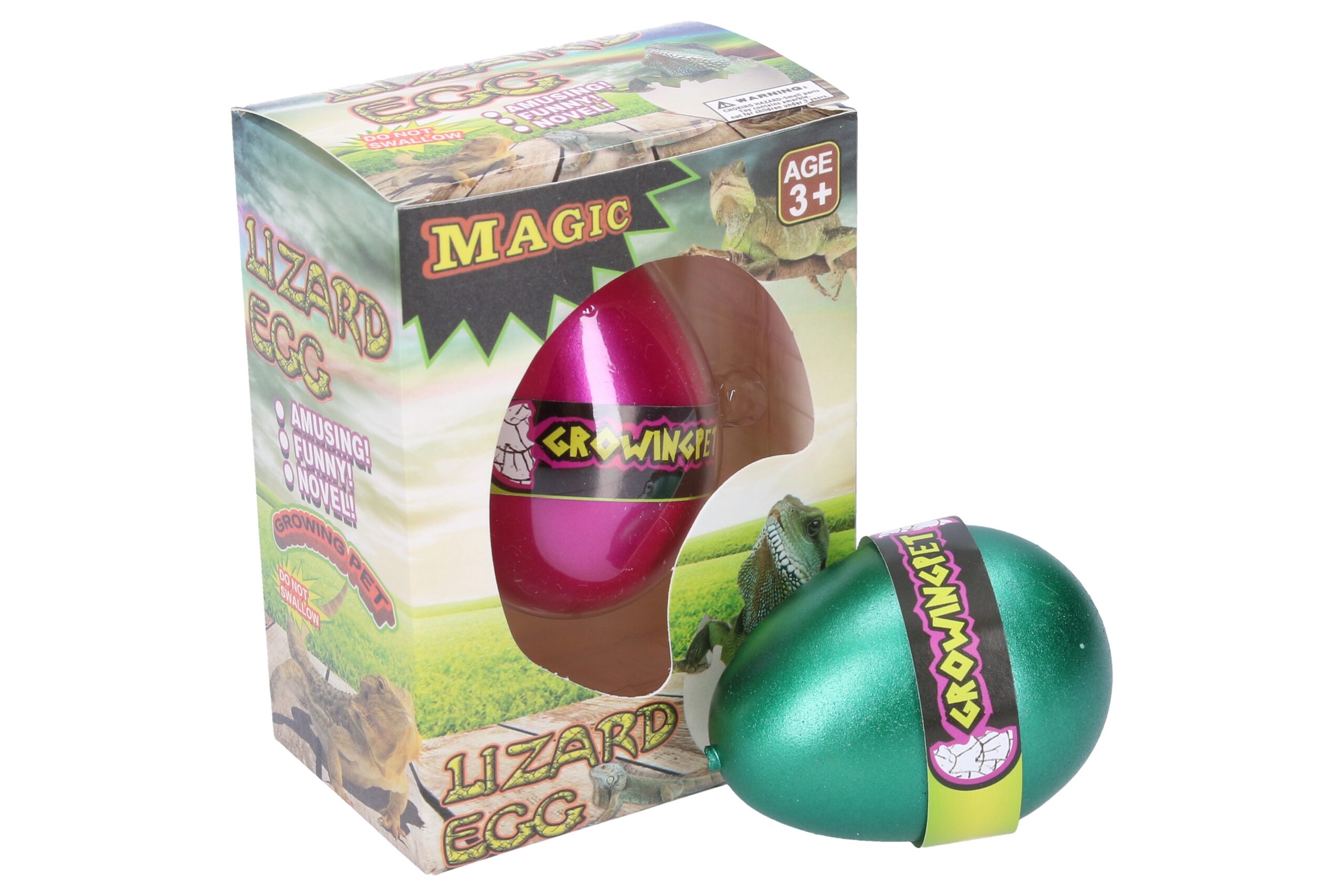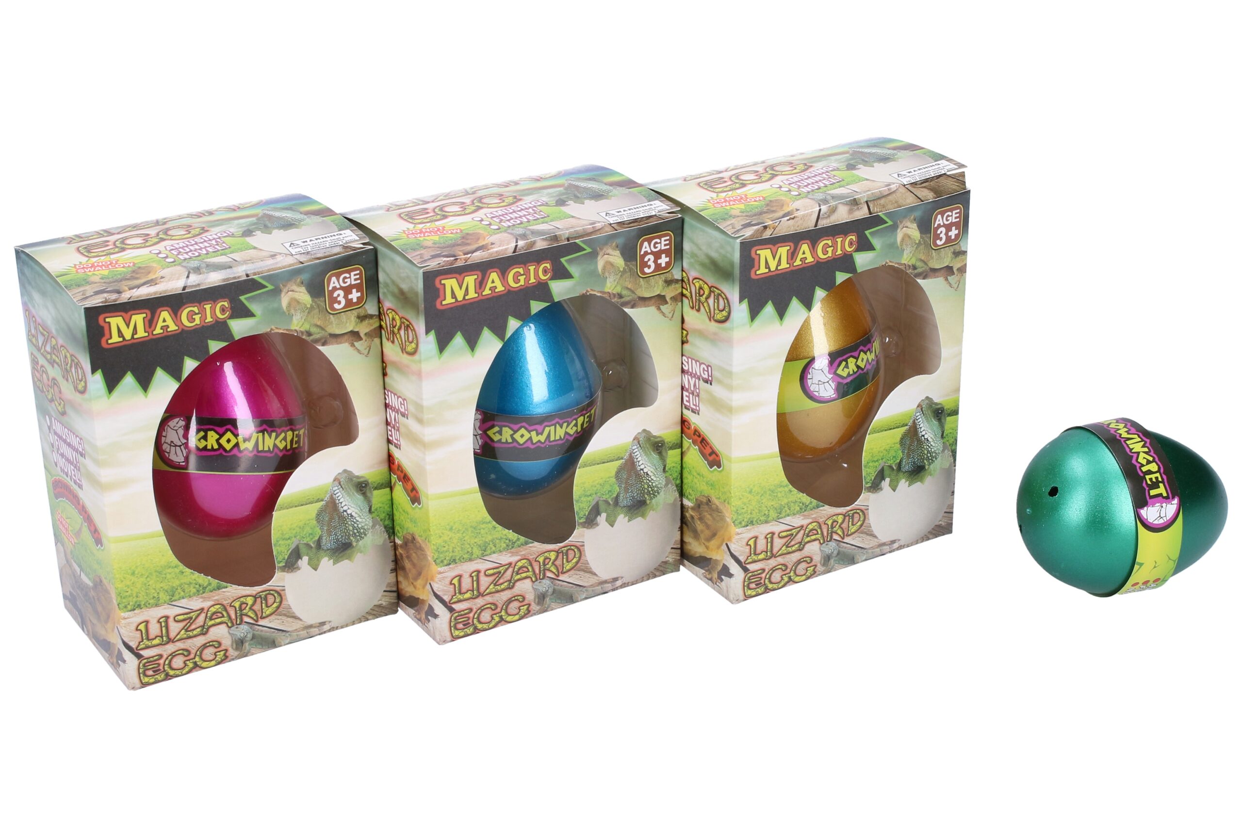 Vejce rostoucí ještěrka. Velikost 6,5 cm. 12 ks display box. 4 varianty – modrá, zlatá, zelená, fialová.
