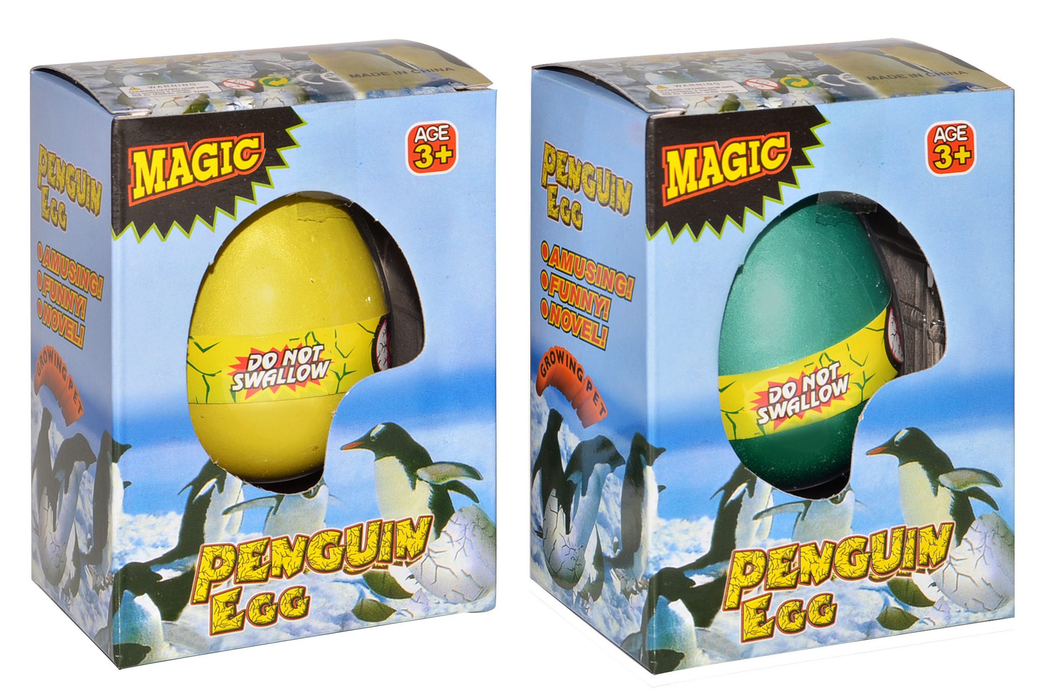 Vejce rostoucí tučňák. Velikost 6,5 cm. 12 ks display box. 4 varianty – modrá, zlatá, zelená, fialová.
