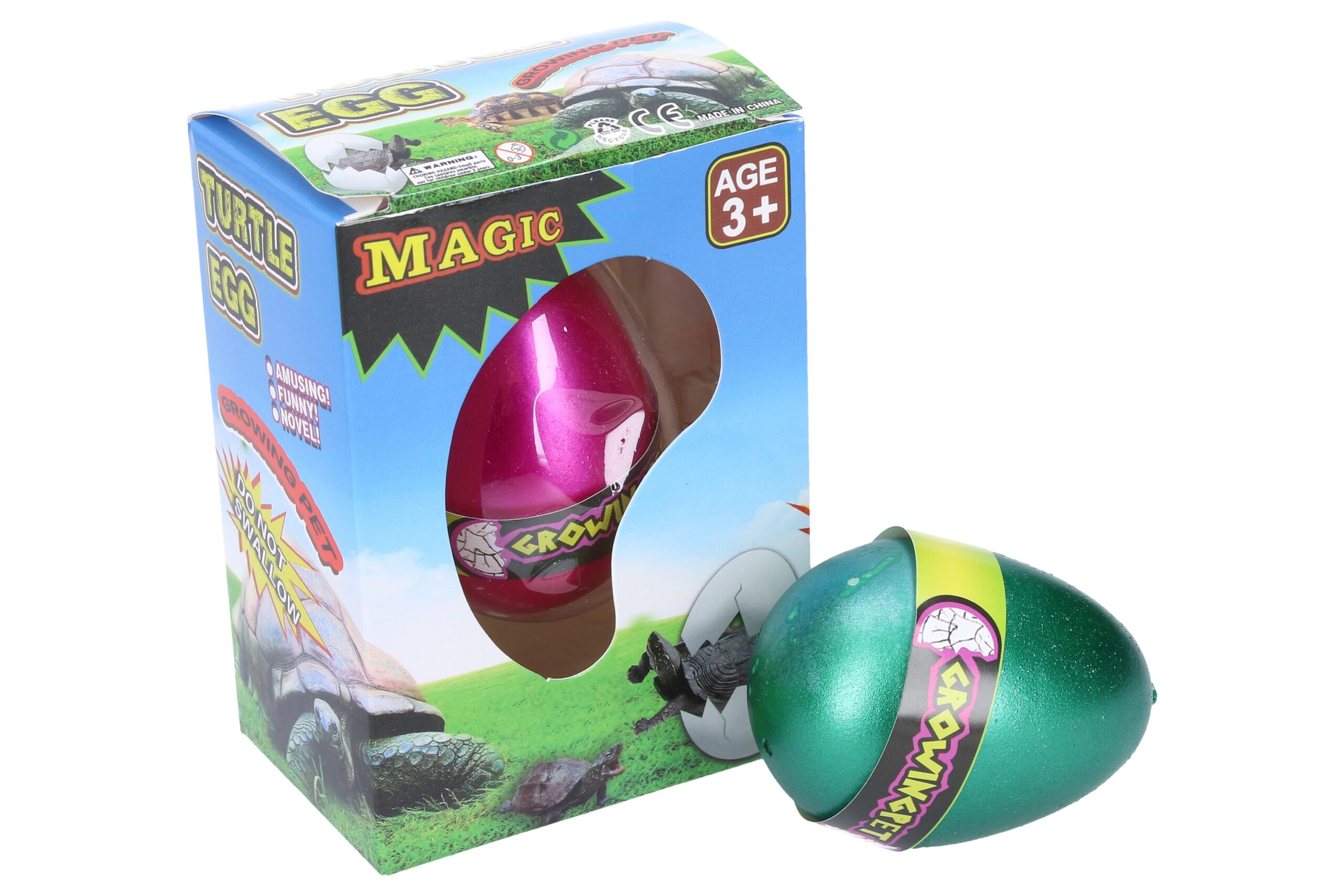 Vejce rostoucí želva, velikost 6,5 cm. Display box 12 ks. 4 varianty – modrá, zelená, zlatá, fialová.