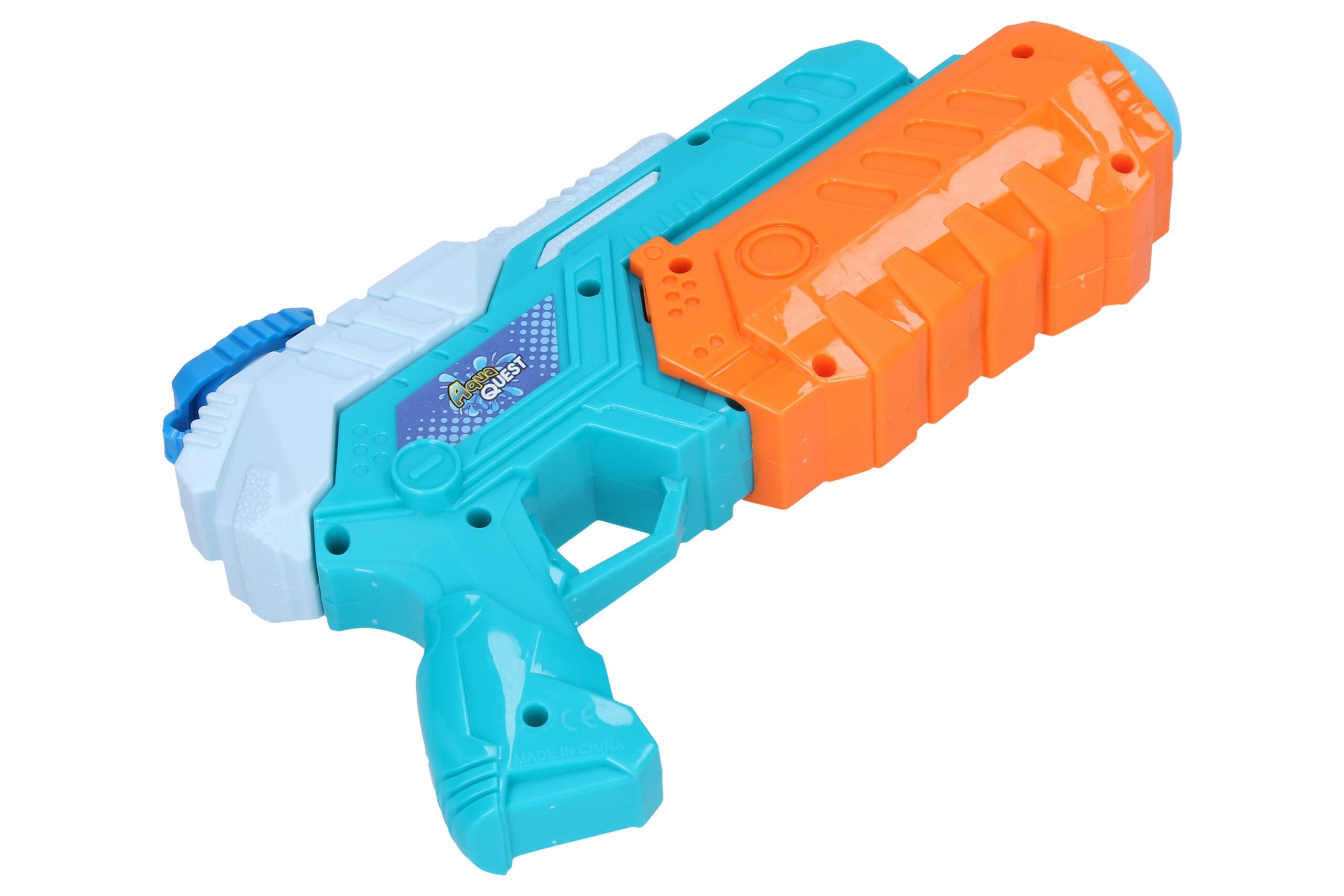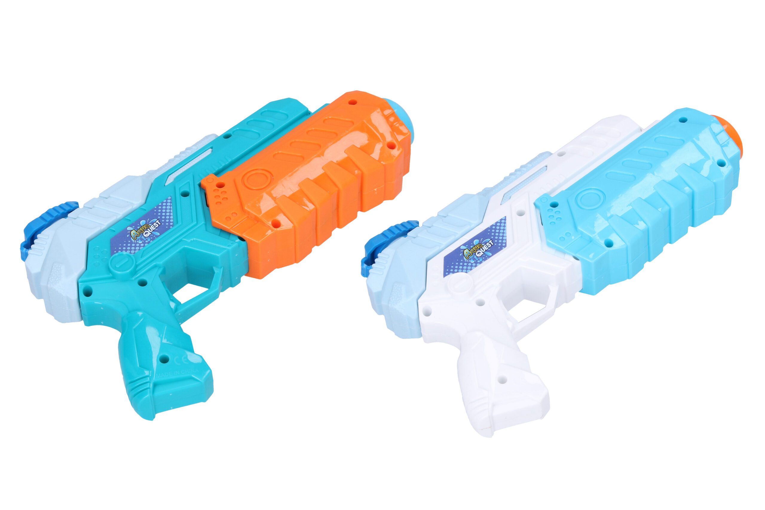 Vodní puška. Velikost 22 cm. 6 ks display box. 2 varianty – modrá, oranžová.