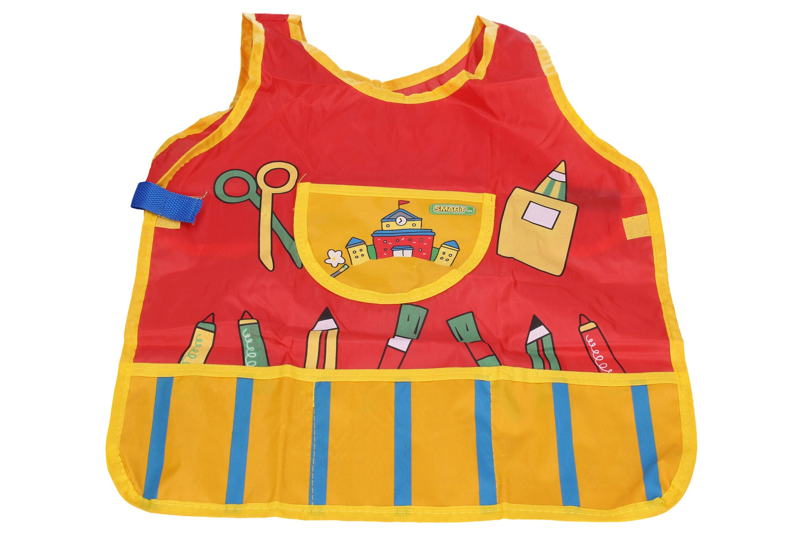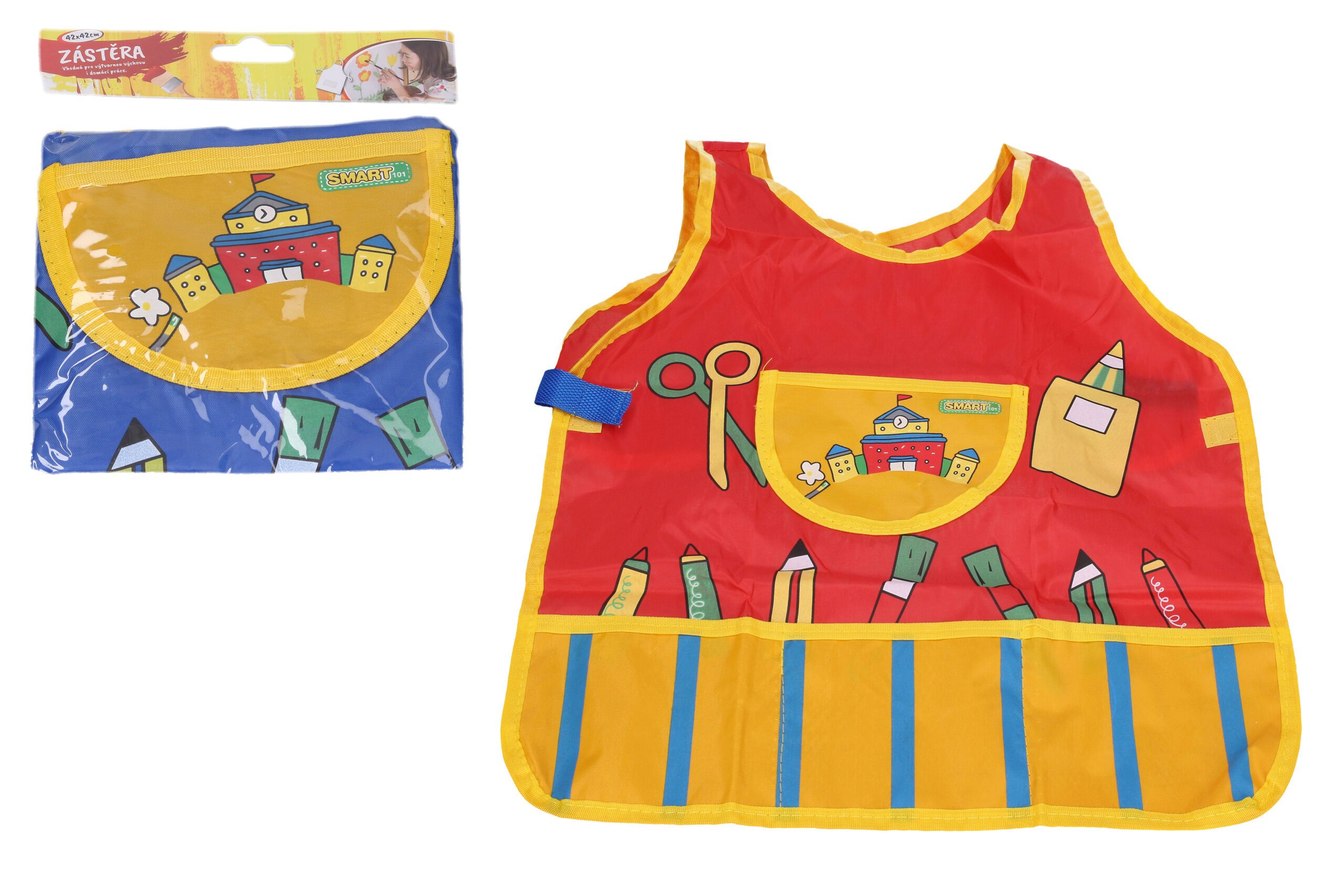 Zástěra na výtvarnou východu o velikosti 42×42 cm. 2 barevné provedení: červená, modrá.